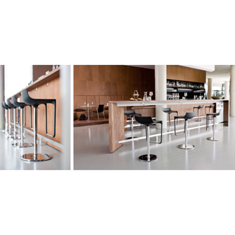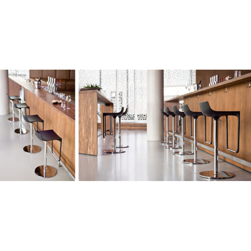 Барний стілець, як і СТІЛЕЦЬ macao виробляється тільки в чорно-білому кольорі, чудово демонструючи плавні контури моделі. Барний стілець доступний з хромованою рамою та опорою для ніг, а також із металевою рамою та опорою з порошковим фарбуванням. Барний стілець також оснащений газліфтом, який забезпечує зручне регулювання сидіння по висоті у міцній та стійкій конструкції.