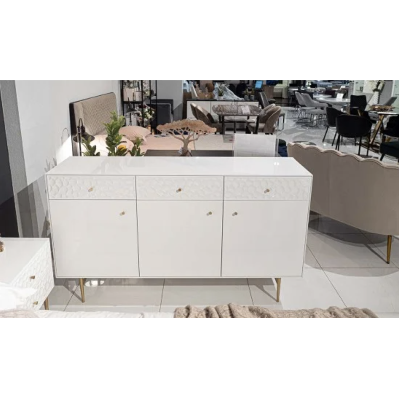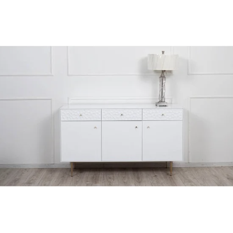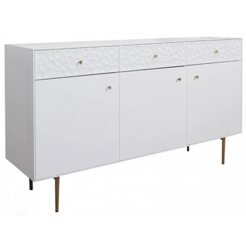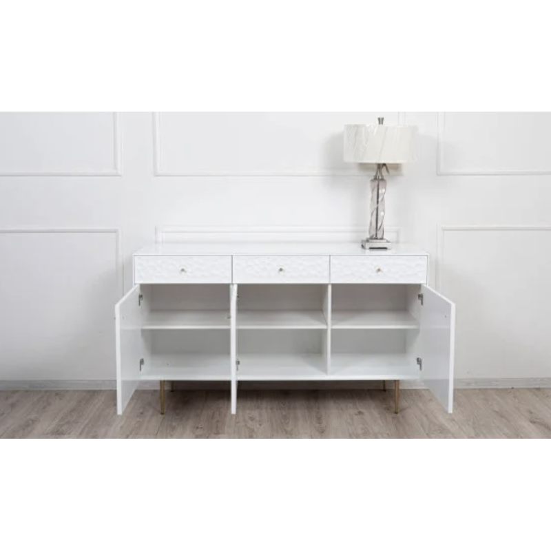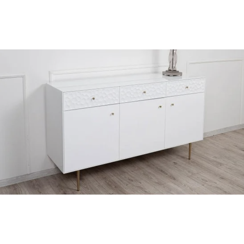 Буфет Аляска (білий, 89×159×45 см) — стильний і практичний меблевий елемент, що поєднує функціональність та сучасний дизайн. Три висувні ящики та три дверцята забезпечують зручне зберігання речей, а білий колір додає інтер’єру легкості та свіжості. Виготовлений із МДФ, буфет відзначається міцністю та довговічністю.