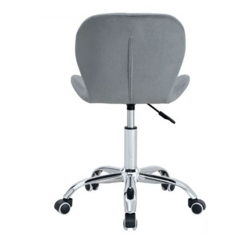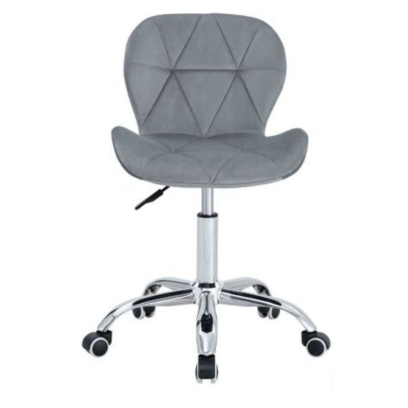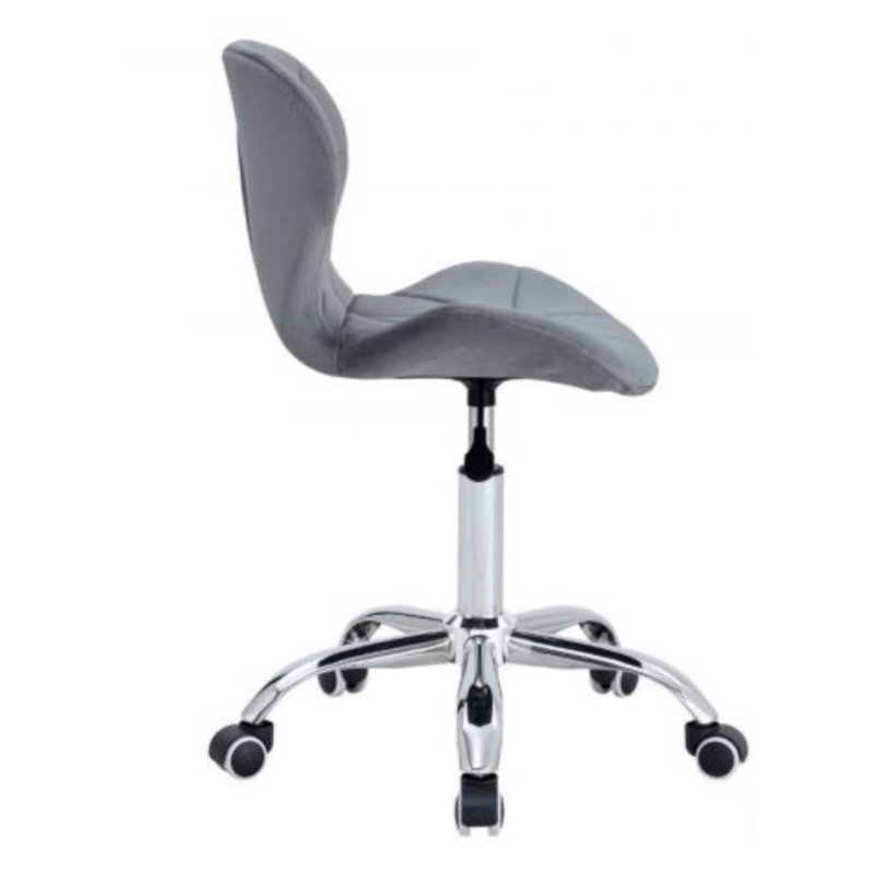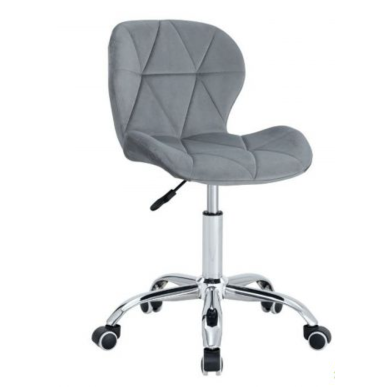 Зручне офісне крісло з м’якою спинкою та округлим сидінням, обтягнутим зносостійким матеріалом. Металева хромована основа, механізм регулювання висоти. Підходить для дому та офісу.