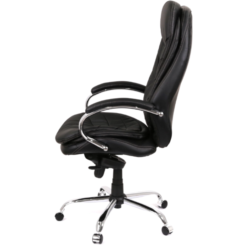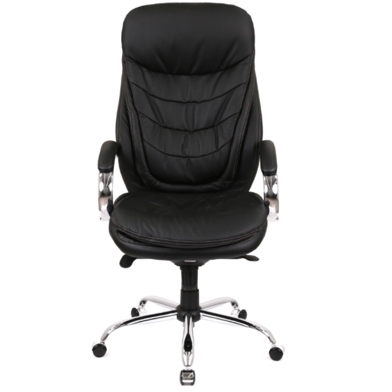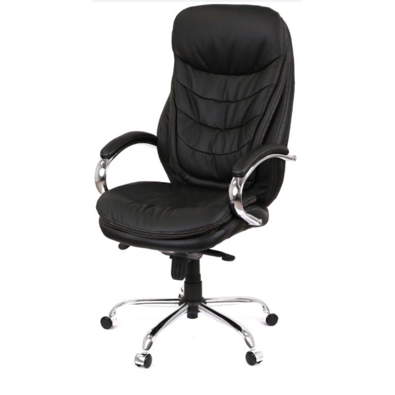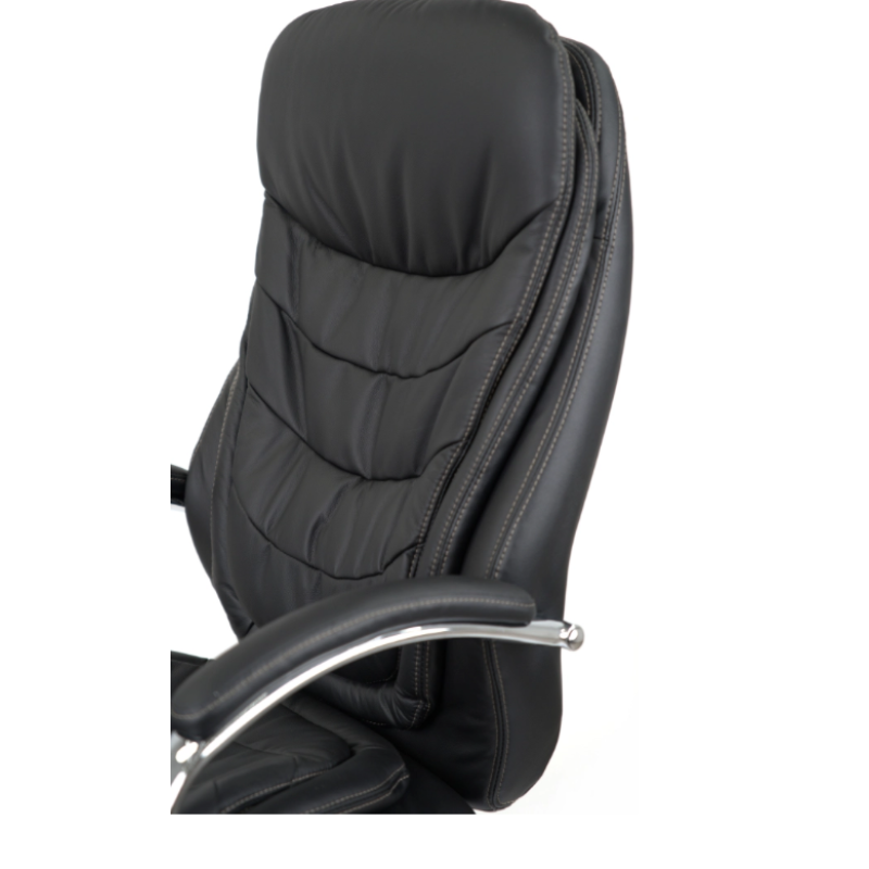 Крісло АКЛАС Валенсія Soft CH MB (00076463) — офісне крісло керівника з високою спинкою та підвищеним рівнем комфорту, розраховане на тривале щоденне використання. Підлокітники металеві з хромованим покриттям, оснащені м’якими накладками з матеріалу оббивки, нерегульовані. Підголівник інтегрований у спинку крісла і окремого регулювання не має. Сидіння м’яке, з комбінованим наповненням із силікону та пінополіуретану, оббивка виконана з натуральної шкіри на робочих поверхнях. Спинка також м’яка, з подушками та ергономічною формою, оббита натуральною шкірою, забезпечує підтримку спини та поперекової зони. Хрестовина п’ятипроменева, металева з хромованим покриттям, оснащена роликами для пересування по підлозі. Крісло обладнане механізмом мультиблок, який забезпечує функцію гойдання, можливість фіксації положення у кількох позиціях, регулювання жорсткості гойдання під вагу користувача та регулювання висоти сидіння за допомогою газліфта. Регулювання підлокітників, глибини сидіння та окремого кута нахилу спинки не передбачені. Максимальне рекомендоване навантаження — до 120 кг.