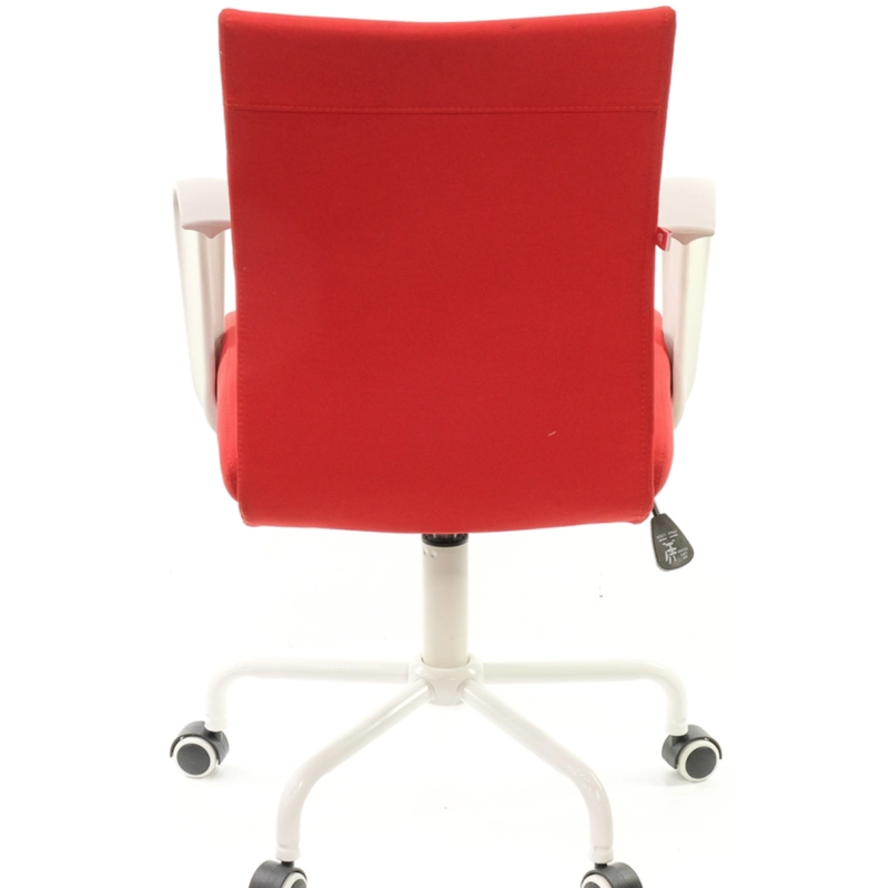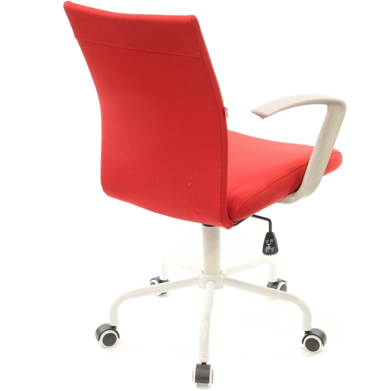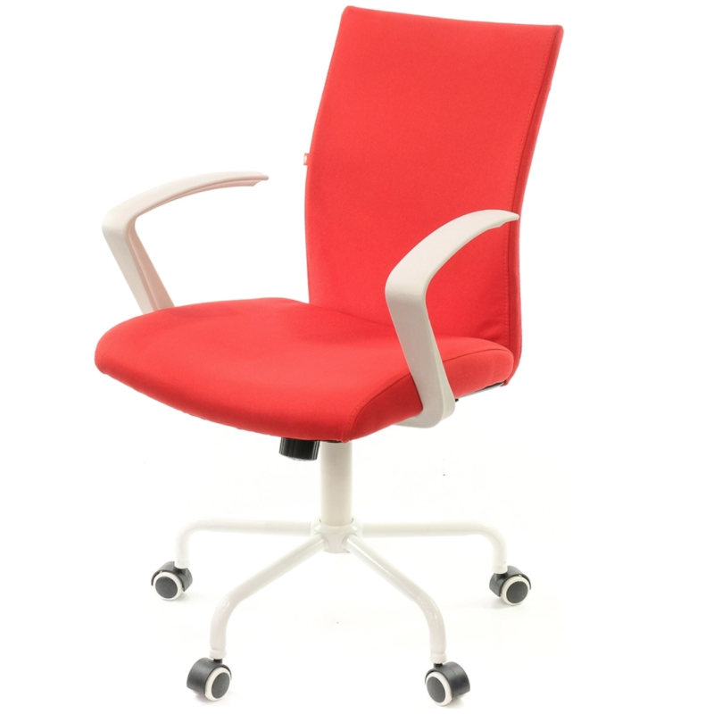 крісло для персоналу. Має компактні розміри, простим зовнішнім виглядом, незвичайної форми хрестовиною і підлокітниками, виконаними в одному кольорі. Зручна ергономічна спинка має прогин в поперековій ділянці, який забезпечить спині комфортну підтримку. Вона тонка, акуратна і елегантна, має металевий каркас, на який натягнута тканина.Оббивкою служить яскрава натуральна тканина. Поглиблення в центральній частині сидіння і скошений передній край формують правильну і зручну посадку і забезпечать здоров'я для ніг.