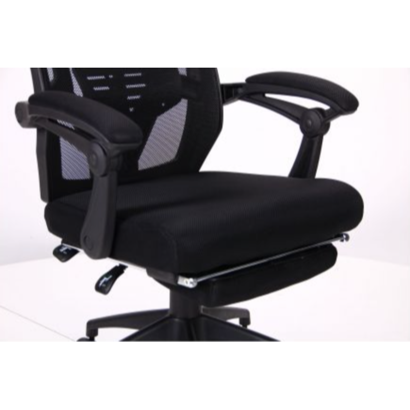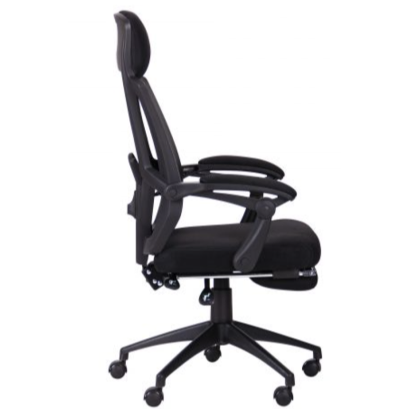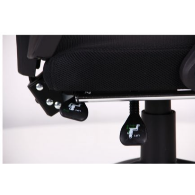 Крісло AMF Art Smart – сучасне ергономічне крісло з мінімалістичним дизайном та максимальним комфортом. Спинка з сіточки відкидається до 135°, передбачено висувну підставку для ніг і м’які накладки на підлокітниках. Оббивка тканинна (чорний або темно-синій колір). Оснащене механізмом Relax, що дозволяє фіксувати кут нахилу у зручному положенні.