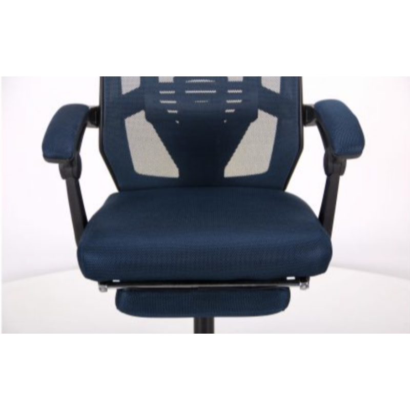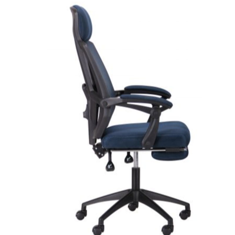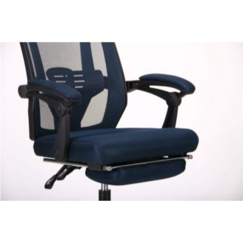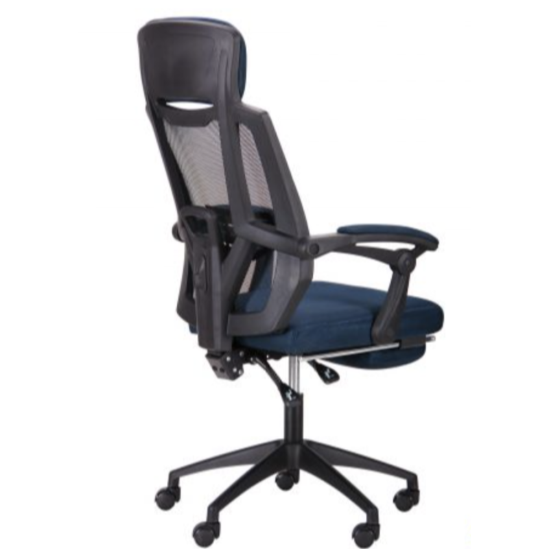 Крісло AMF Art — сучасне крісло з мінімалістичним дизайном і високим комфортом. Має спинку, що відкидається на 135°, висувну підставку для ніг, м’які підлокітники та обгумовані ролики. Механізм Релакс дозволяє змінювати й фіксувати кут нахилу спинки в будь-якому положенні. Спинка з сітки та сидіння з тканини доступні в чорному або темно-синьому кольорі.