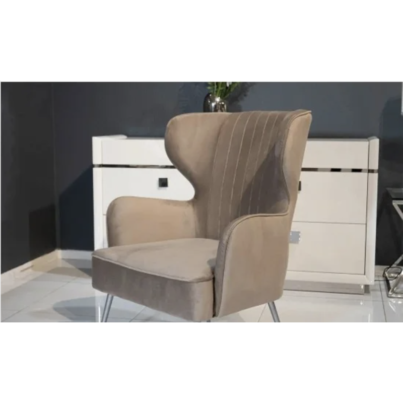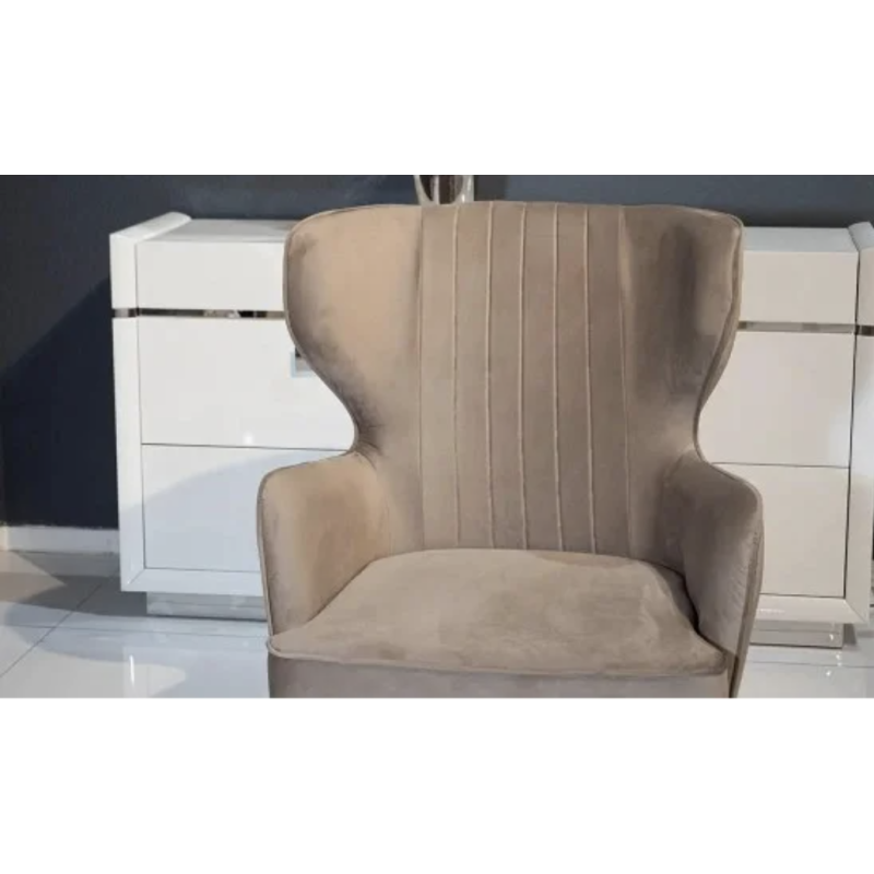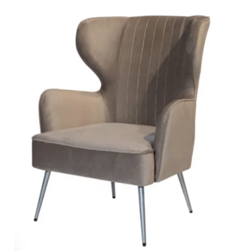 Крісло Естетик (бежеве, тканина бархат, 76×82×98 см, металеві ніжки срібло) — вишукане м’яке крісло, яке поєднує комфорт і сучасний стиль. Висока спинка та м’яке бархатне сидіння забезпечують зручність навіть під час тривалого відпочинку, а металеві ніжки сріблястого кольору додають елегантності та стійкості конструкції. Ідеальне рішення для вітальні, спальні чи лаунж-зони.
