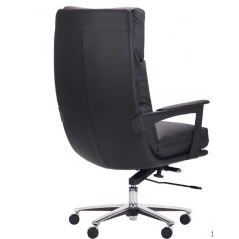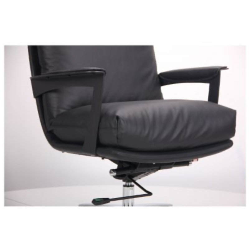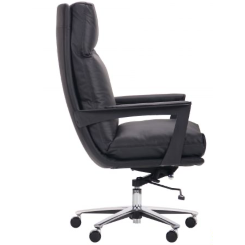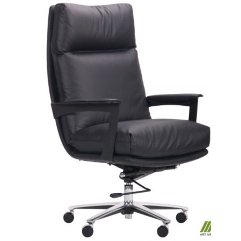Комфортне крісло з м’якою спинкою та сидінням, наповненими латексом і пухом, підголівником, класичними підлокітниками з накладками зі шкіри, комбінованою оббивкою з натуральної шкіри та якісного шкірзамінника. Має колінний механізм гойдання DeepTilt з регулюванням жорсткості та фіксацією у робочому положенні. Основа – хромована хрестовина з п’ятьма роликами.