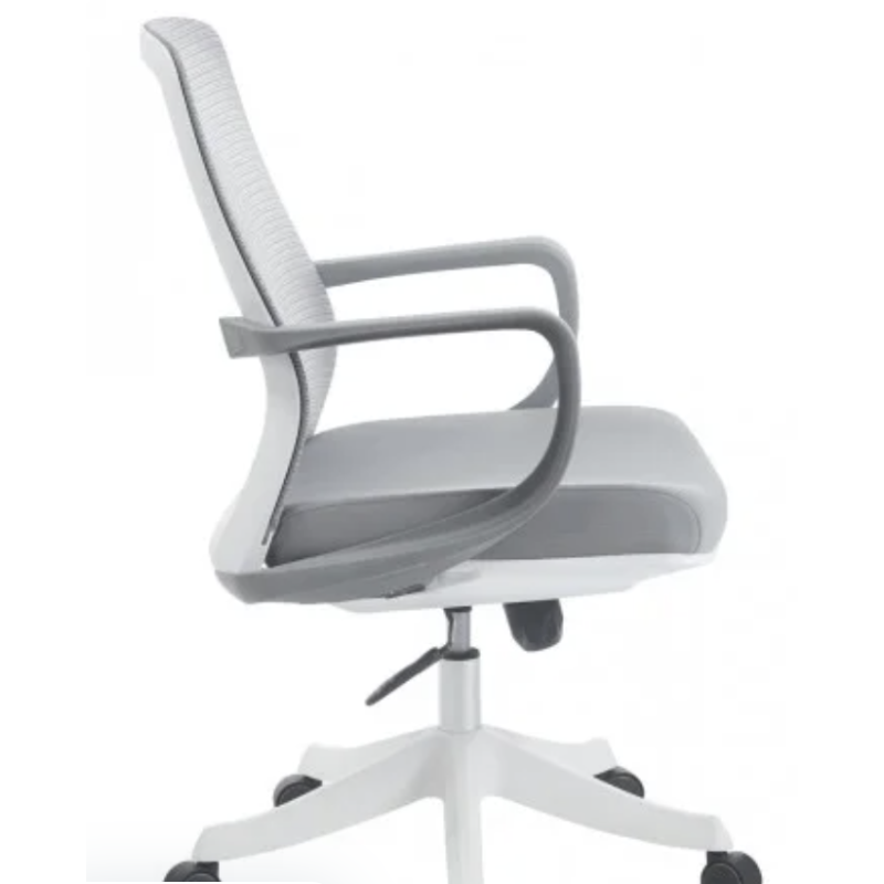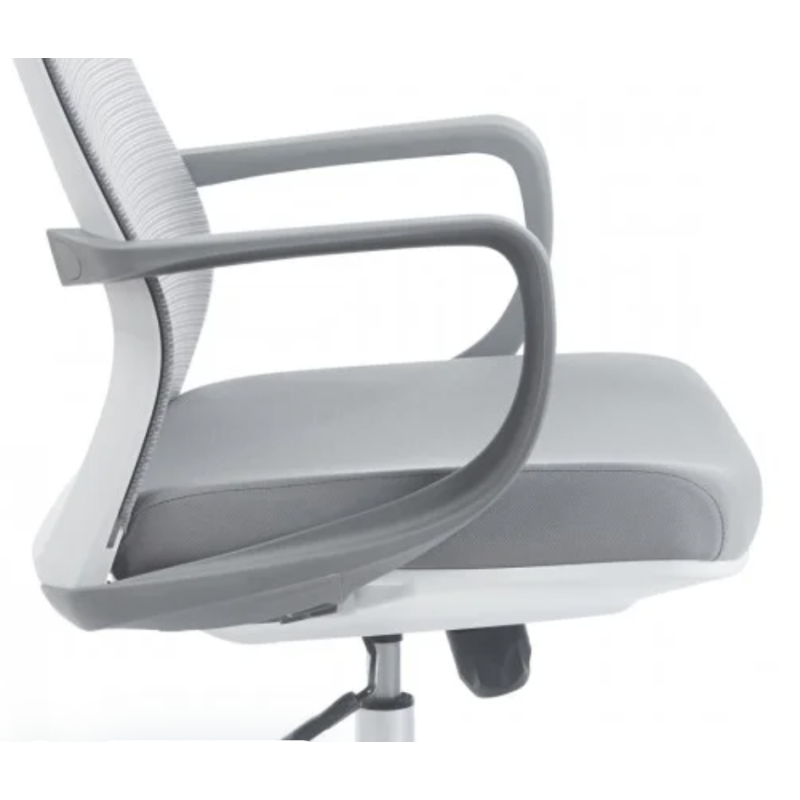 Офісне крісло CELIA (сіре / білий каркас) — сучасне і зручне рішення для роботи вдома чи в офісі. Ергономічна форма, оббивка з тканини та сітки забезпечують комфорт і вентиляцію під час тривалого сидіння. Надійний механізм TILT дозволяє регулювати висоту та нахил, а міцний пластиковий каркас витримує навантаження до 120 кг.