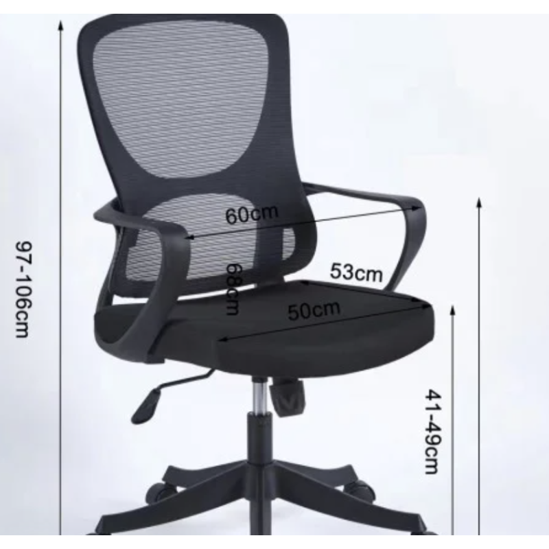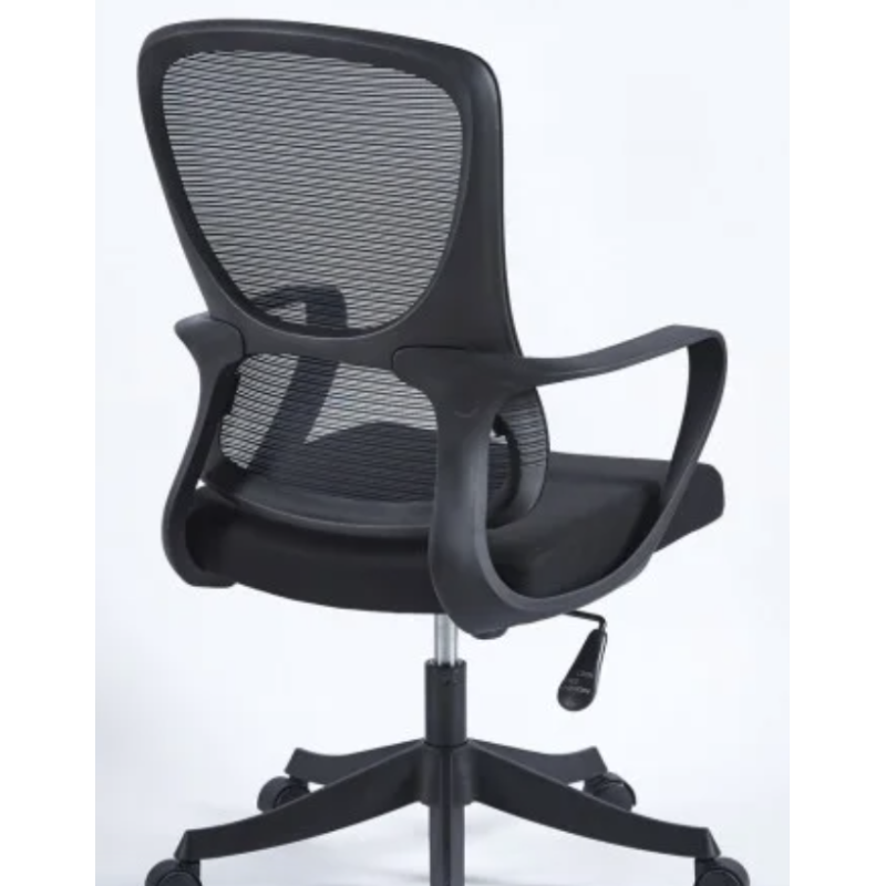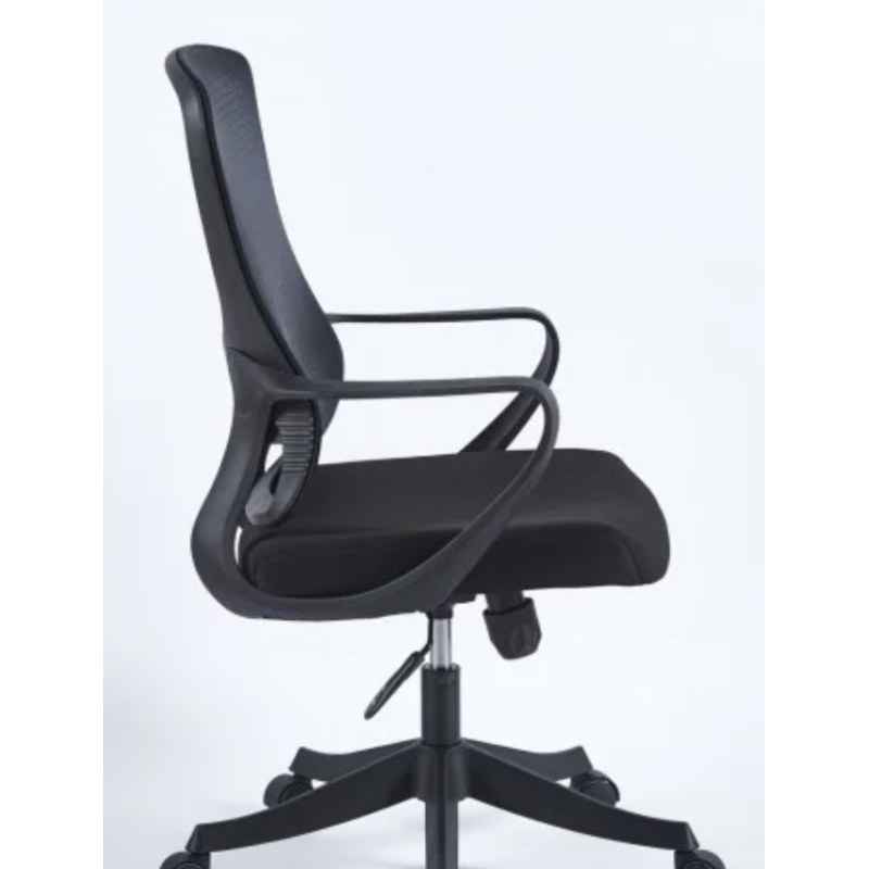Офісне крісло JUNE чорне/чорний каркас – практична модель з мембранною тканиною-сіткою. Оснащене механізмом TILT, сидінням із фанери з поролоном та фіксованими підлокітниками. Газліфт 3 класу, нейлонова основа 320 мм, пластикові колеса. Максимальне навантаження – 120 кг. Розмір коробки: 67×31×60 см.