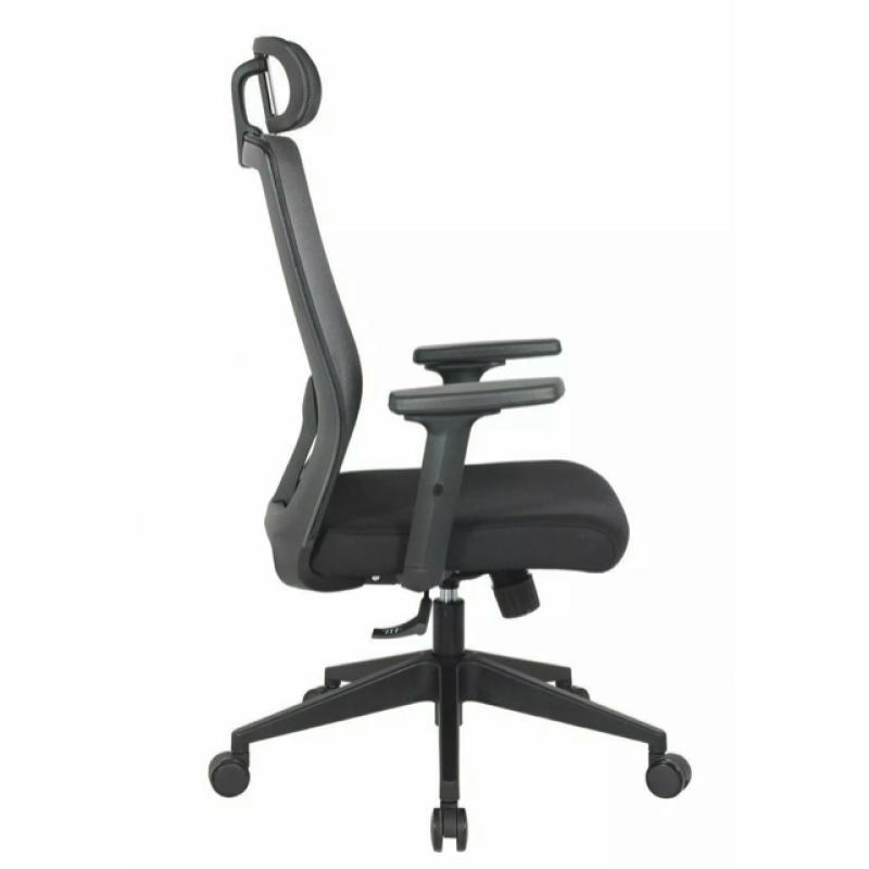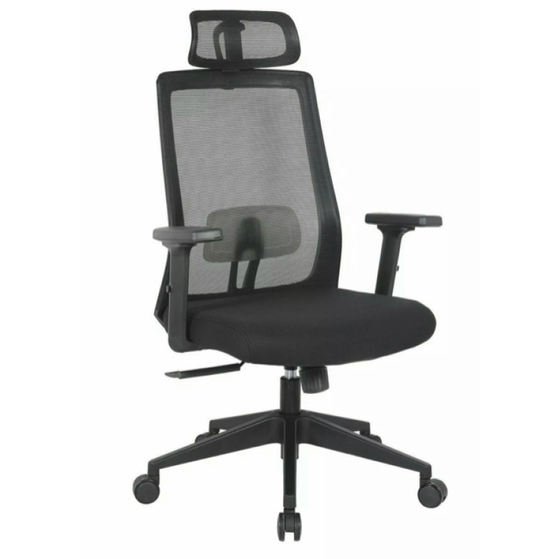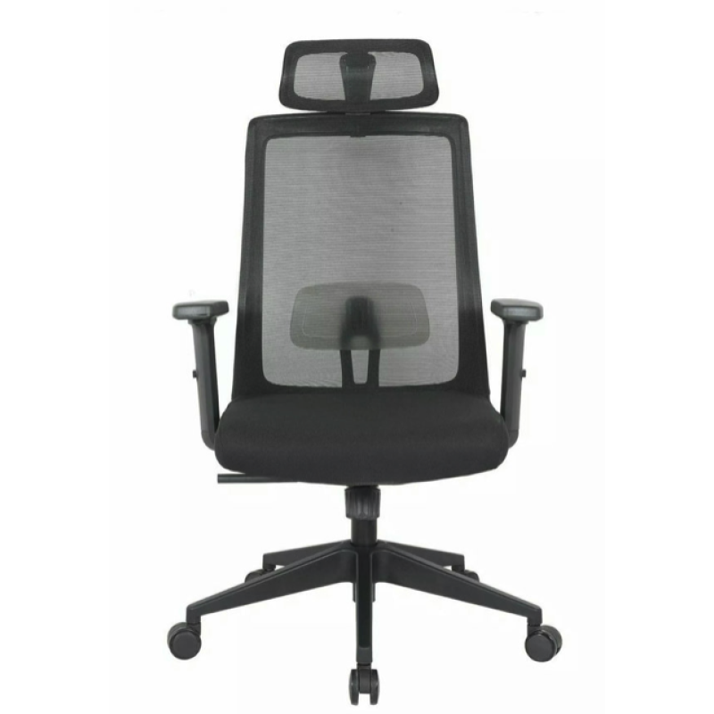 Крісло, що обертається, оббивка: сітка+мембранна тканина, каркас: пластик, колір: чорний. Мультиблок, регульований: підлокітники, підголівник, поперековий підпір