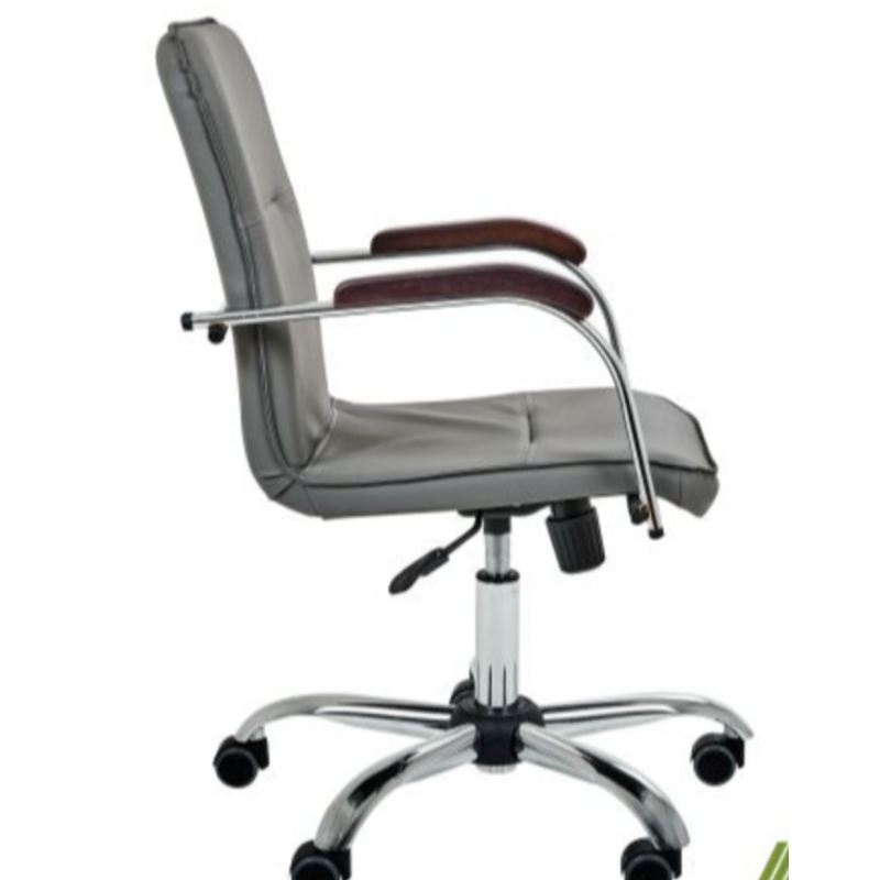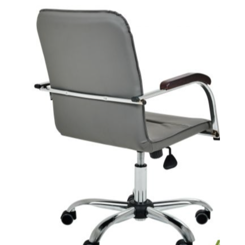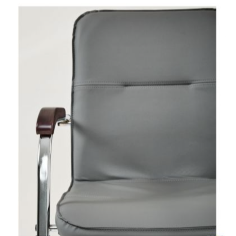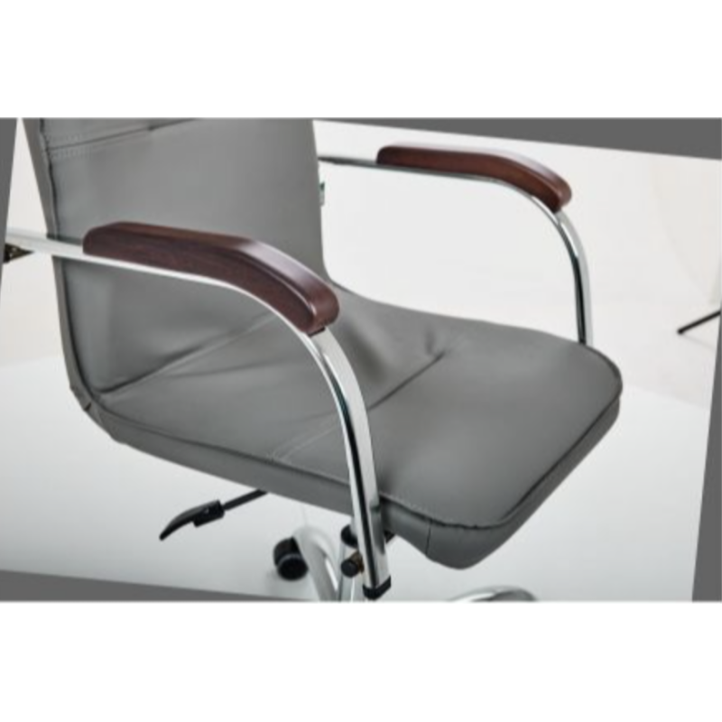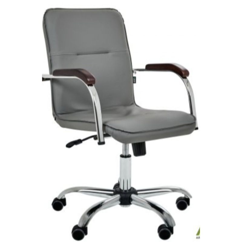 Крісло Самба-RC Хром без канта — зручне комп’ютерне крісло з металевими підлокітниками та дерев’яними накладками з бука, оснащене механізмом гойдання Tilt і колесами з можливістю обертання на 360°. Каркас кольору хром, оздоблення під колір горіх. Характеристики та комплектація можуть бути змінені виробником.