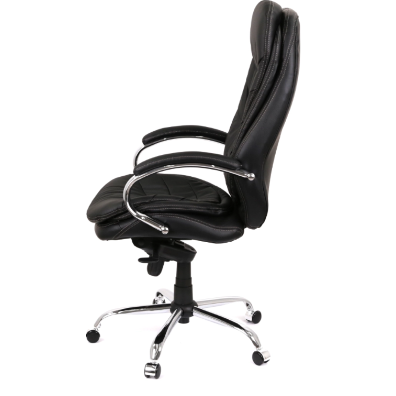 Підлокітники. Підлокітники округлої форми виготовлені з хромованою металевої труби. М'які накладки будуть служити вашим рукам надійною і комфортною опорою і захищати руки від контакту з холодною металевою поверхнею. Вдало підібрані розмір і висота підлокітників дозволять зручно розмістити руки, коли плечі впираються і не втомлюються під час довгого робочого дня, а також з легкістю прибрати крісло під стіл, коли воно не використовується за призначенням, і звільнити навколишній простір.