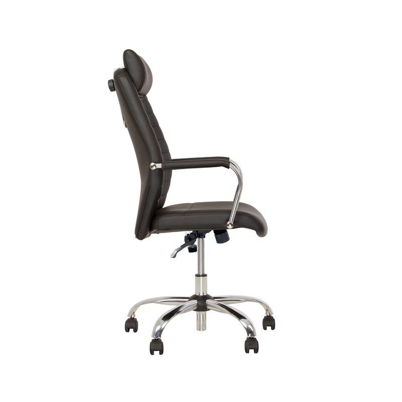 Завдяки прошивці та м'якому наповнювачу вдалося створити гарний рельєф крісла з горизонтальними декоративними лініями. Блискучі хромовані деталі надають крісло сучасного та стильного вигляду.