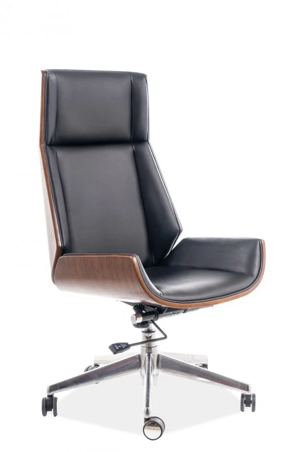 Крісло Maryland від Signal меблі - ідеальний вибір для декору сучасного офісу, кабінету або студії. Ефектне сучасне крісло виглядає дуже елегантно і оригінально. М'яке сидіння і спинка, оббиті високоякісної екокожа, «огортають» корпус крісла, що імітує дерево в кольорі горіх. Цікаве поєднання двох особливо популярних в індустріальному стилі квітів привертає увагу і прекрасно гармонує з інтер'єром, оформленим у стилі лофт.