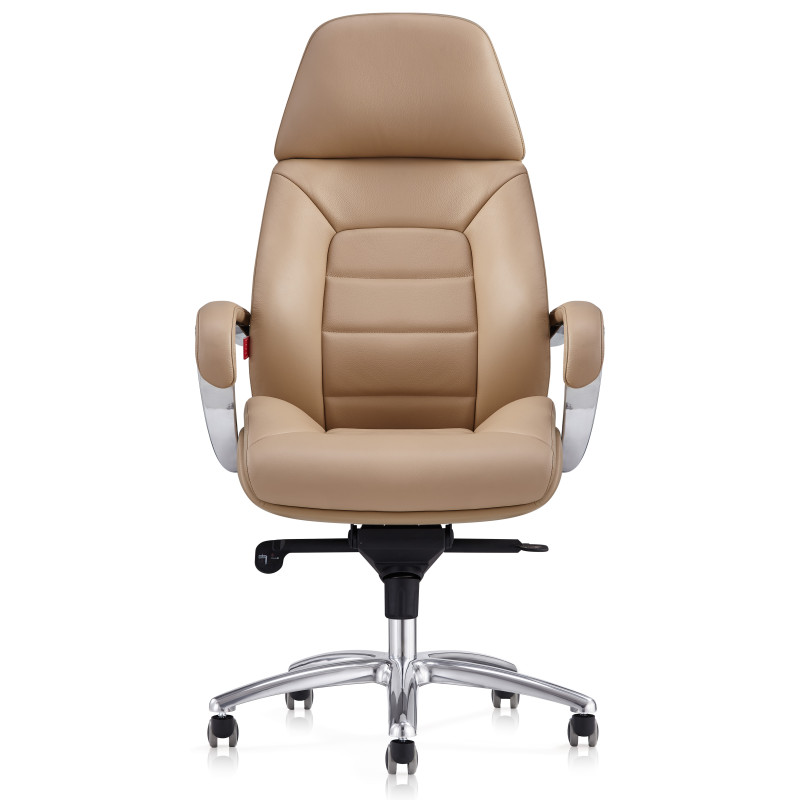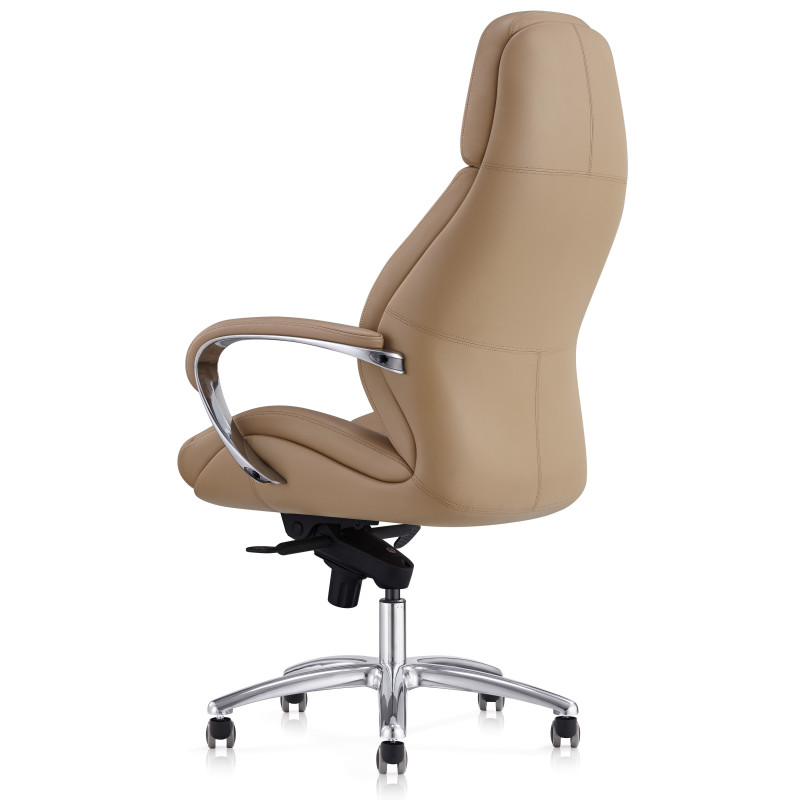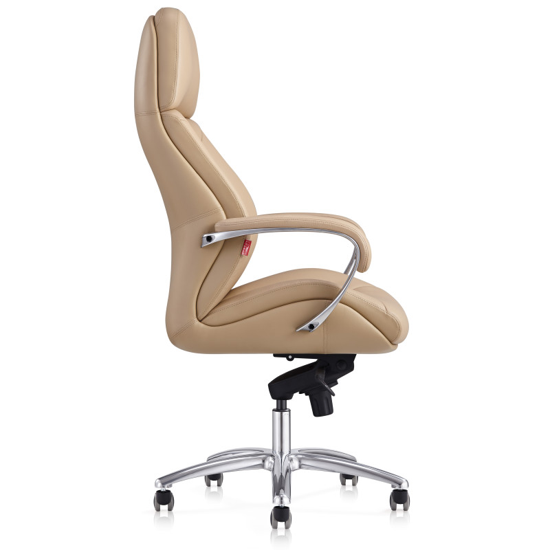 Крісло керівника F181 BIEL матового чорного кольору надасть інтер'єру відчуття стабільності та солідності, завдяки чому ця модель лише позитивно позначатиметься на формуванні іміджу компанії. Спинка візуально розділена на дві частини: верхня гладка грає роль підголівника, нижня - з дизайнерським простроченням і краями, що виступають, забезпечує хорошу бічну підтримку спини. Як оббивка використана шкіра Люкс – один з найкращих матеріалів, що використовується для виробництва меблів преміум сегмента. Також цю модель можна виготовити з іншими видами оббивки інших кольорів за умови оптового або контрактного замовлення. У цій моделі передбачено все для зручності користувача. Крісло регулюється по висоті, є можливість налаштування жорсткості відхилення спинки. Металеві підлокітники доповнені м'якими накладками. Спинка та сидіння ергономічної форми – для підтримки спини у правильному положенні та попередження болю у попереку. Мобільність крісла забезпечують ролики, прикріплені до 5-променевої хромованої хрестовини. Іншими словами, тут продумано кожну деталь, щоб зробити офісну роботу максимально комфортною.