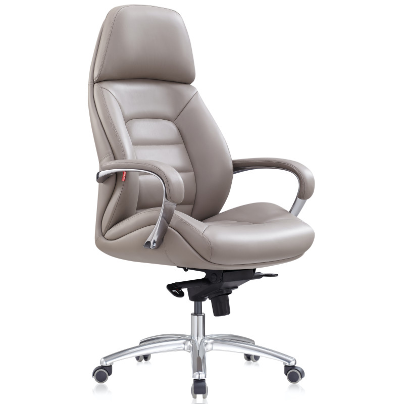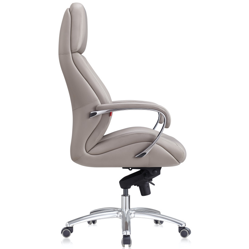 Крісло керівника F181 GREL світло сірого кольору надасть інтер'єру відчуття стабільності та солідності, завдяки чому ця модель лише позитивно позначатиметься на формуванні іміджу компанії. Спинка візуально розділена на дві частини: верхня гладка грає роль підголівника, нижня - з дизайнерським простроченням і краями, що виступають, забезпечує хорошу бічну підтримку спини. Як оббивка використана шкіра Люкс – один з найкращих матеріалів, що використовується для виробництва меблів преміум сегмента. Також цю модель можна виготовити з іншими видами оббивки інших кольорів за умови оптового або контрактного замовлення. У цій моделі передбачено все для зручності користувача. Крісло регулюється по висоті, є можливість налаштування жорсткості відхилення спинки. Металеві підлокітники доповнені м'якими накладками. Спинка та сидіння ергономічної форми – для підтримки спини у правильному положенні та попередження болю у попереку. Мобільність крісла забезпечують ролики, прикріплені до 5-променевої хромованої хрестовини. Іншими словами, тут продумано кожну деталь, щоб зробити офісну роботу максимально комфортною.