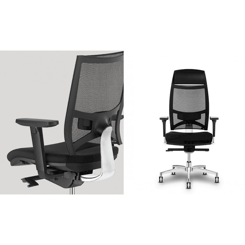 Офісне крісло Team Strike з підлокітниками, що регулюються по висоті Синхромеханізм, який фіксує спинку у 5 позиціях Система анти-шок та налаштування відхилення спинки під вагу тіла за допомогою механізму, який розташований збоку, додаткові опції: регулювання глибини сидіння та висоти підтримки спини. Спінка: сітка чорного кольору Сидіння: тканина чорного кольору Хрестовина: пластикова Ролики: Ø 50 мм Виробництво: Італія Регулювання: Висота спинки Висота сидіння Глибина сидіння Ширина крісла Жорсткість відхилення
