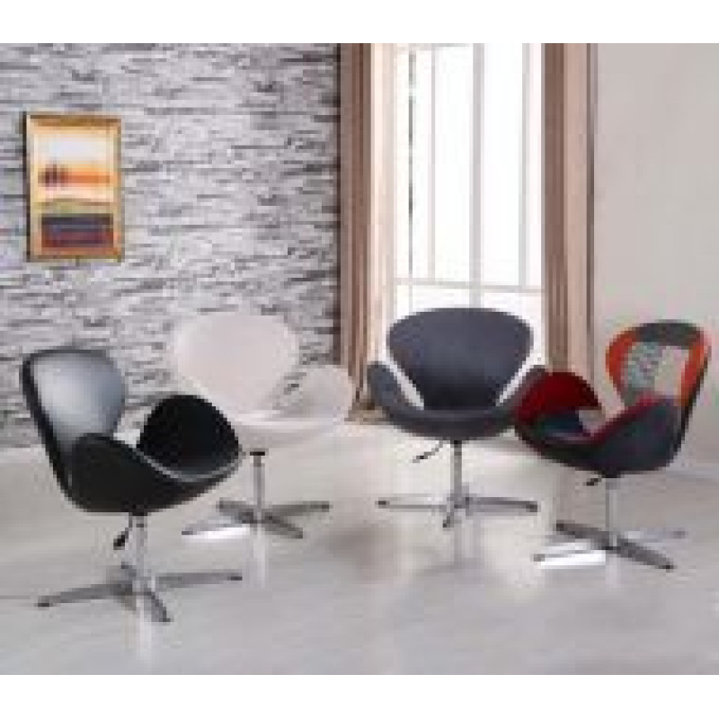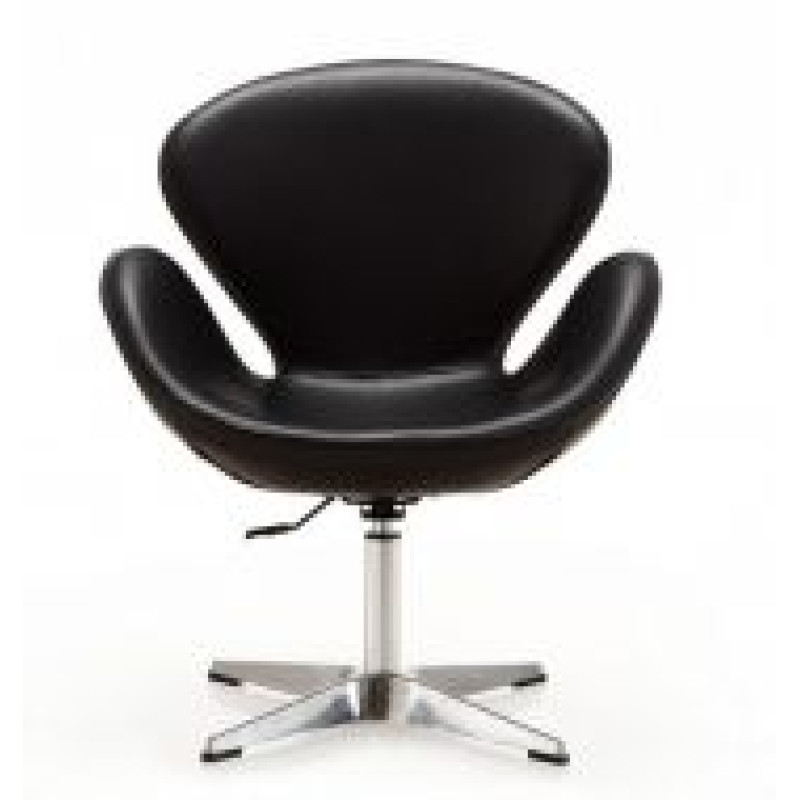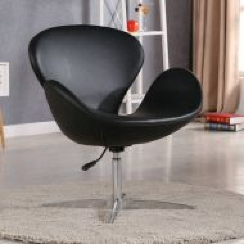 Крісло сучасне, сидіння і спинка, підлокітники м'які, матеріал каркаса метал і формований і еластичний пінополіуретан, матеріал екошкіра, повертається і піднімається вгору, підстава алюмінієве на хрестовині, розмір: ширина сидіння 44 см, глибина сидіння 46 см, висота спинки 47 см, висота від підлоги до сидіння від 40 см до 56 см, висота від підлоги до верху спинки 84 см.