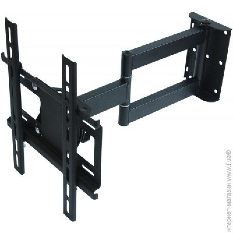 Настінне кріплення Eagle TV4233 Для середніх LED, РК телевізорів та моніторів. Вузлів повороту: три (180 ° / 360 ° / 180 °) Регулювання горизонту: ±12° Вузли нахилу: ±12° VESA: від 50х50 мм до 200х200 мм. мін. відстань від стіни: 60 мм Макс. відстань від стіни: 400 мм Допустиме навантаження, рекомендується: 20 кг Вага кронштейна: 2,91 кг Матеріал: листова сталь Колір чорний Гарантія: 60 місяців Країна виробник: Україна особливості: Дозволяє винести телевізор на відстань до 400 мм від стіни. Настінні кріплення Eagle - високоміцні вироби завдяки технології виробництва з використанням не порошкової сталі, а листової, при холодному штампуванні відбувається додаткове ущільнення матеріалу відповідно до зміцнення виробу, збільшення стійкості до навантажень, комплектація з високоміцними наборами металовиробів. Тип з'єднання: зварювання - найміцніший вид з'єднання на сьогоднішній день.