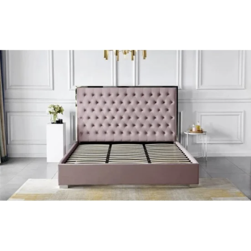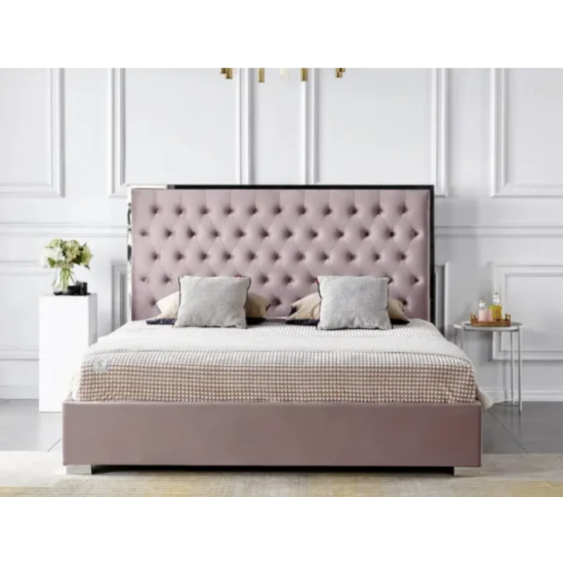 Ліжко Беттані 1,8 (рожеве, 180×200 см) — сучасне та елегантне двоспальне ліжко, яке стане справжньою окрасою спальні. Оббивка з ніжного велюру додає затишку й створює атмосферу комфорту, а високе узголів’я підкреслює стиль і практичність моделі. Ліжко підходить для матраца розміром 180×200 см і забезпечує простір для комфортного сну.