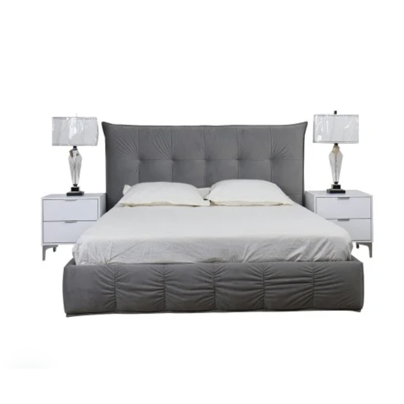 Ліжко Теана 1,8 (сіре, з підйомним механізмом, 180×200 см) — стильне та практичне рішення для сучасної спальні. Завдяки підйомному механізму під матрацом знаходиться простора ніша для зберігання, що робить модель функціональною та зручною. М’яка оббивка з велюру додає відчуття затишку, а високе узголів’я створює атмосферу комфорту й елегантності.
