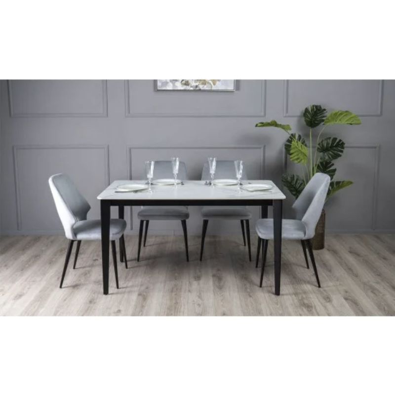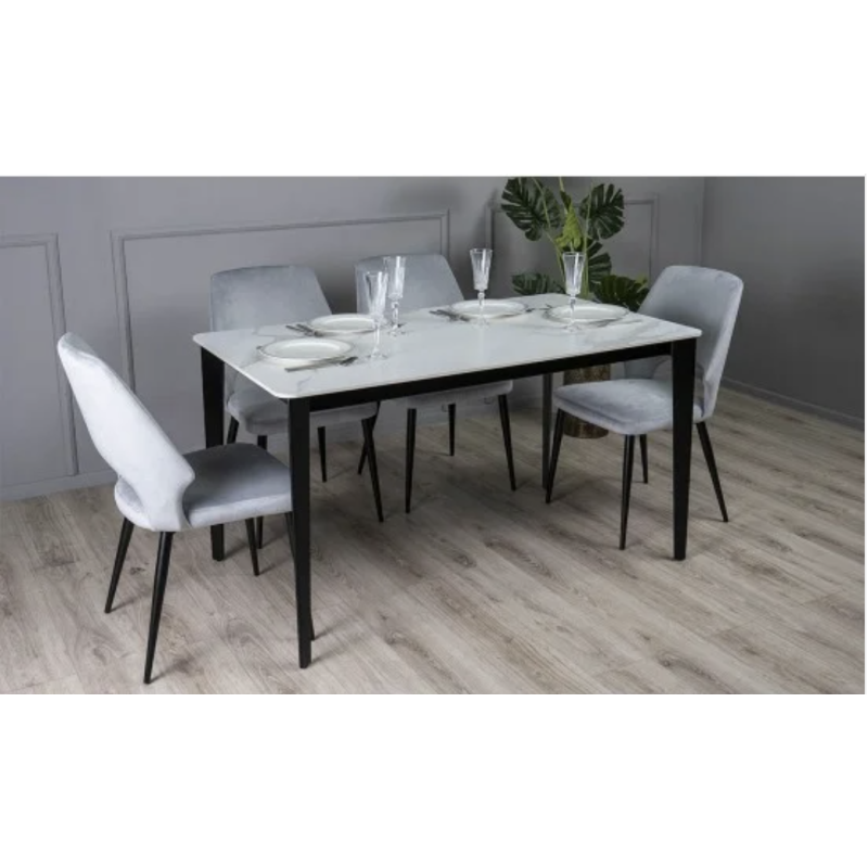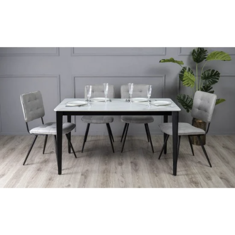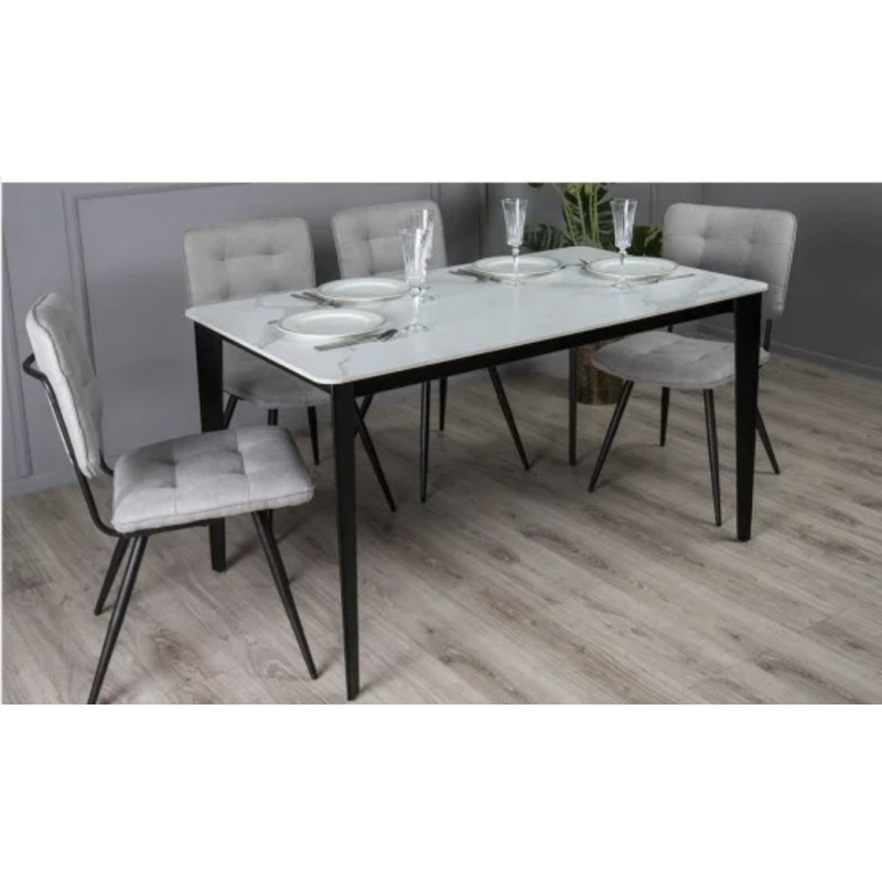Обідній стіл Корнер (білий мат, 1395×795×760 мм) — елегантний і практичний стіл для сучасної кухні чи їдальні. Прямокутна стільниця з кераміки має матове покриття, яке виглядає стильно та стійке до щоденного використання. Міцний металевий каркас чорного кольору гарантує надійність і довговічність. Стіл розрахований на комфортне розміщення 4–6 осіб.