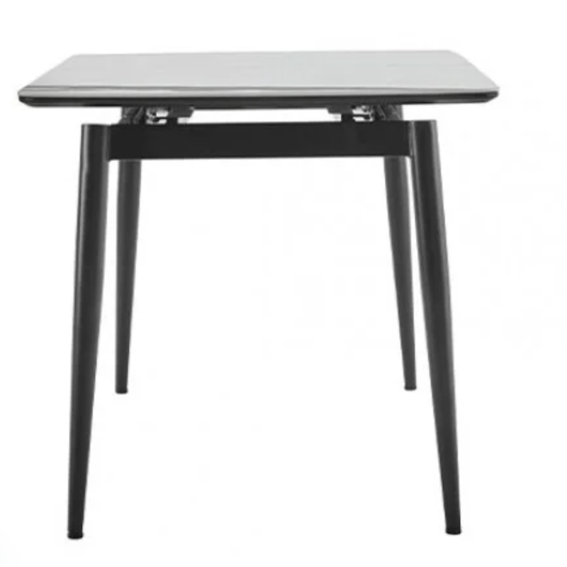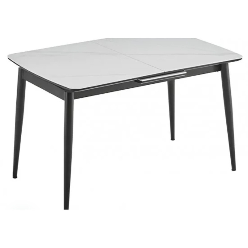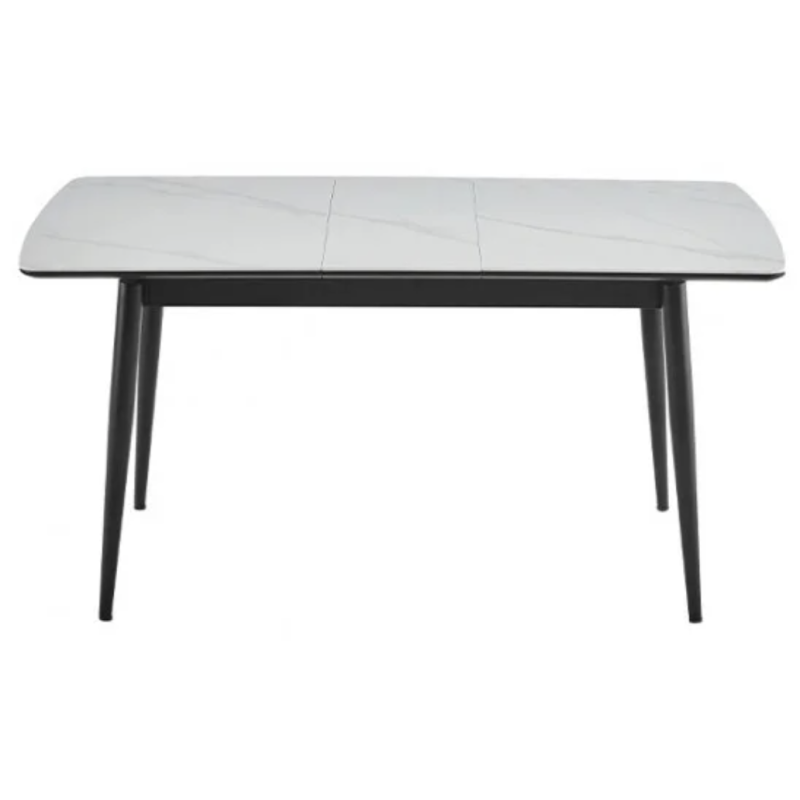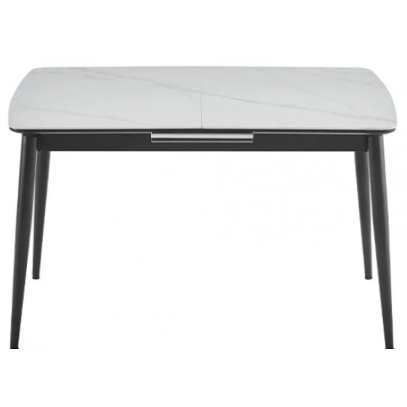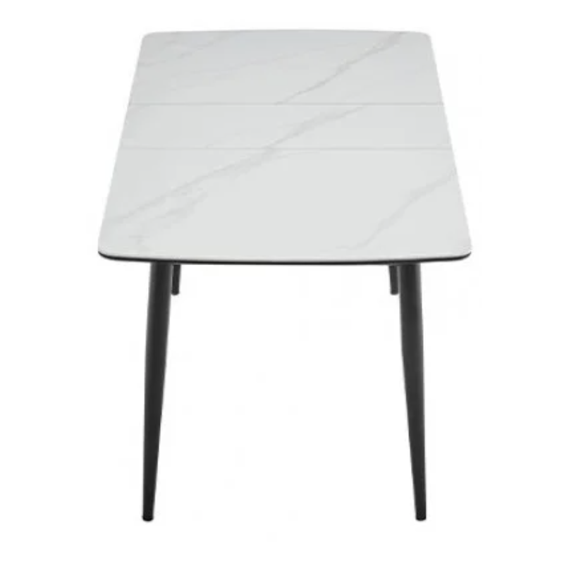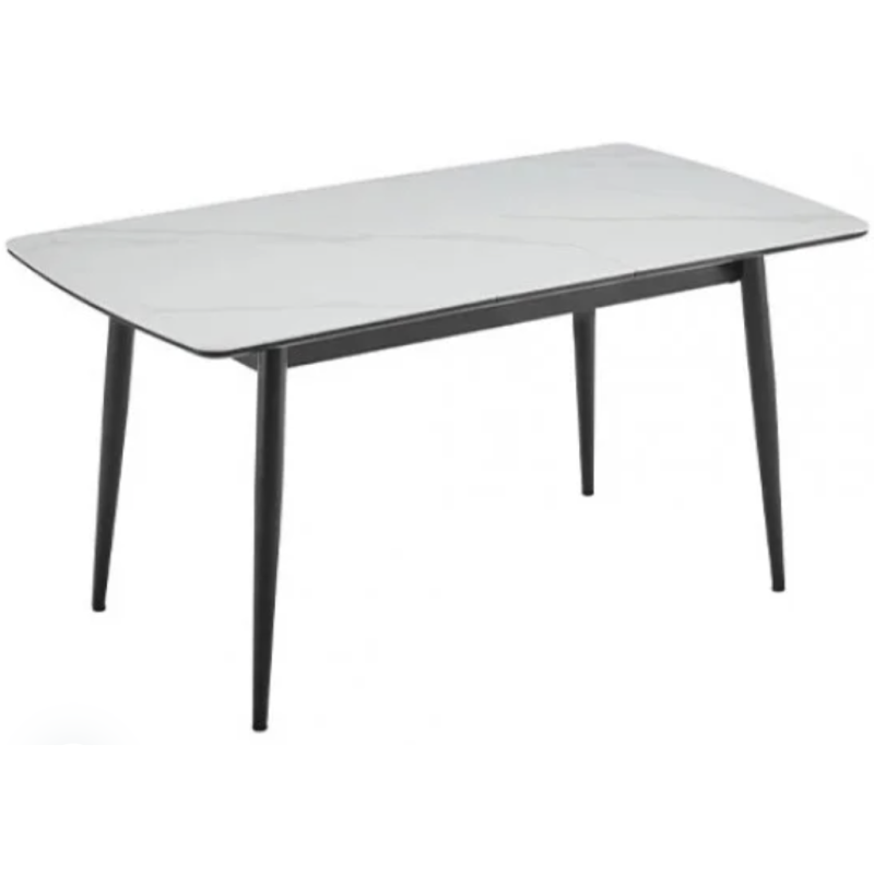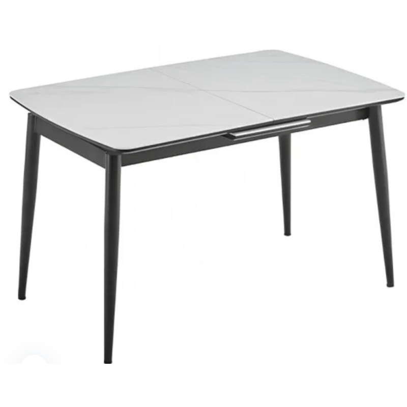 Обідній стіл Лейк (білий глянець, розкладний, 1200/1500×800×760 мм) — сучасний і практичний стіл для кухні чи їдальні. Стільниця з МДФ та кераміки у глянцевому білому відтінку виглядає стильно та елегантно, а розкладний механізм дозволяє збільшити довжину зі 120 до 150 см, забезпечуючи зручність для 4–6 осіб. Міцний металевий каркас чорного кольору додає конструкції надійності та довговічності.