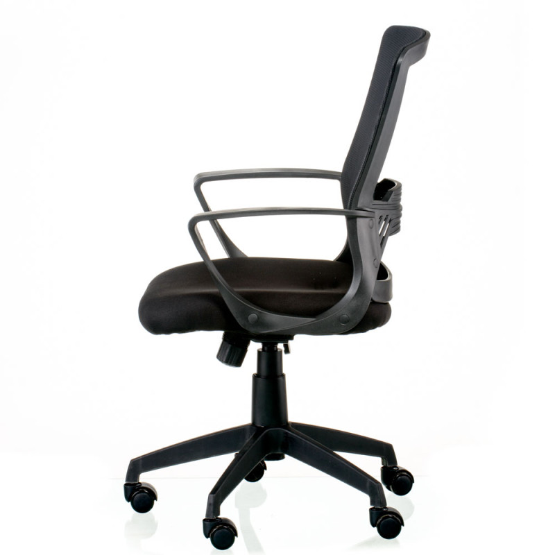 Тип: крісло офісне Колір чорний Матеріал покриття: спинка - Сітка містить: 76% еластомеру/24% поліестеру з високою міцністю на розтяг сітки. Сидіння (PP) – поліпропілен. Механізм: Tilt з регулюванням гойдання під вагу користувача Підлокітники: нерегульовані, матеріал-пластик, колір – чорний. Корпус: Дерево, пластик Хрестовина: посилений пластик, колір - чорний, 320 мм із прогумованими роликами. З функцією блокування коліс. Газліфт: пофарбований у пластмасовому чохлі чорного кольору, 100 мм 3-й клас Висота крісла: 108-120 см Висота сидіння: 38-50 см Висота спинки: 74 см Ширина спинки: 49 см Ширина сидіння: 51,5см Довжина сидіння: 52,5 см Висота підлокітників: 67-79 см Анатомічна посадка Поперекова підтримка Гранична вага: 120 кг Вага нетто 9,5 кг брутто 11 кг Розміри упаковки 79х32х64 см Гарантія: 12 місяців Країна виробник: Китай