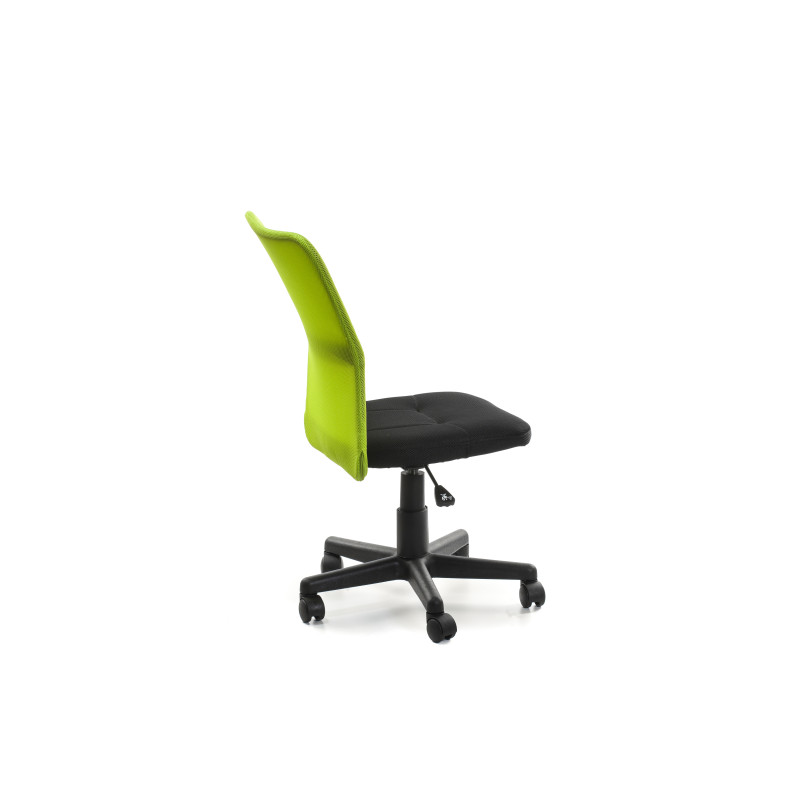 Матеріал покриття: сидіння, спинка сітка з поліестеру. Колір сидіння: чорний, колір спинки - салатовий Механізм та налаштування: висота сидіння регулюється з за допомогою газового амортизатора. Хрестовина: хрестовина із пластику, колір: чорний. Колеса: пластикові колеса, діаметр штифта: 11мм. Розміри: висота 86-98см, висота сидіння 40-52см, глибина сидіння 42см, ширина сидіння 42см. Додаткова інформація: гранична вага 80кг.
