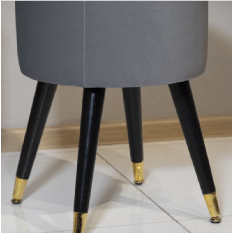 Пуф Джой (сірий, із золотими насадками, 37×37×50 см) — компактний та стильний елемент інтер’єру, який поєднує сучасний дизайн і практичність. М’яке сидіння забезпечує комфорт, а декоративні золотисті насадки на ніжках додають виробу елегантності та вишуканості. Ідеально підходить для спальні, вітальні чи передпокою.