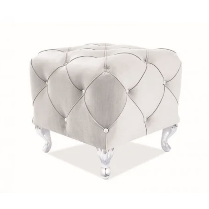 Пуф HESTIA K VELVET (світло-сірий BL.03 / срібний) — елегантний і практичний аксесуар для дому в класичному стилі. Оббитий м’якою бархатною тканиною, він забезпечує комфорт під час сидіння, а металевий каркас у сріблястому кольорі додає вишуканості та довговічності конструкції. Ідеально пасує до вітальні, спальні чи передпокою.