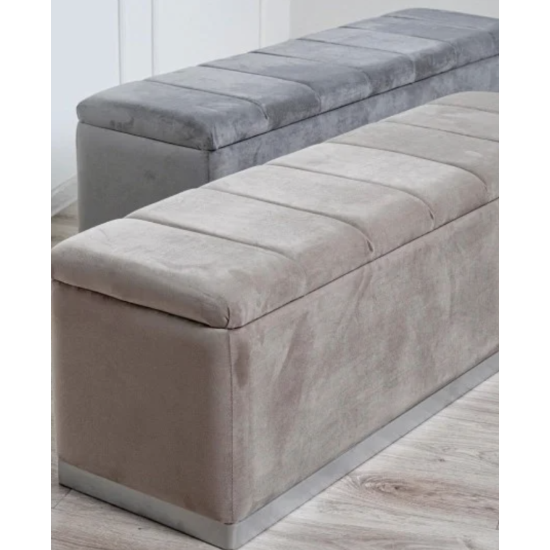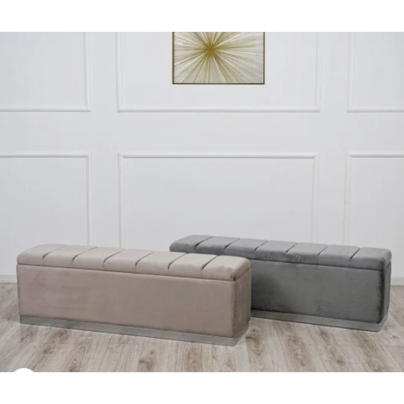 Лавка Брайт (бежева, 140×40×44 см) — елегантна банкетка у сучасному стилі, яка поєднує зручність і вишуканість. М’яке сидіння з бархатної тканини створює відчуття затишку, а дерев’яний каркас забезпечує надійність та довговічність. Завдяки відсутності підлокітників модель виглядає легкою та універсально вписується у спальню, коридор чи вітальню.