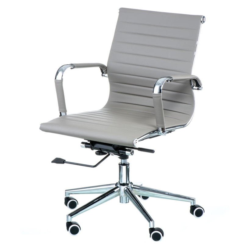 Тип: крісло керівника Колір сірий Матеріал оббивки: артшкіра Підлокітники: нерегульовані, матеріал - хромований метал, із чохлами з артшкіри. Газліфт: хромований, 80 мм, 3 клас. Хрестовина: хромований метал, 320 мм, прогумовані колеса Механізм та налаштування: Deep Tilt (DT) з регулюванням гойдання в одному (робочому) положенні. Висота крісла: 92-100 см. Висота сидіння: 46-54 см. Висота спинки: 45 см Ширина спинки: 45 см Ширина сидіння: 47см Довжина сидіння: 46 см Висота підлокітників: 68-76 см. Анатомічна посадка Вага: 130 кг Вага нетто: 14 кг, брутто: 16 кг Розміри упаковки: 76х34х58 см Гарантія: 12 місяців