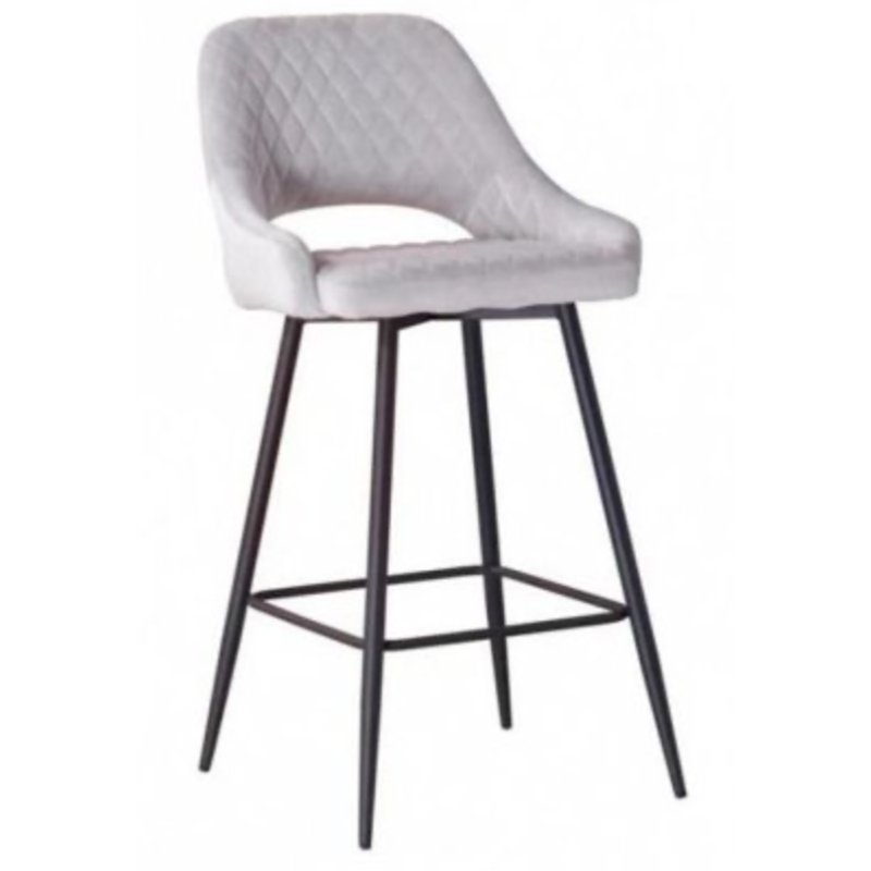 Високий барний стілець - Високий стілець - Металевий каркас, оброблений чорною епоксидною фарбою - Сидіння оббите оксамитовою тканиною РОЗМІРИ: Ширина: 50 см. Глибина: 53 см. Висота: 108 см. Висота посадки 70 см Тон, півтон у відтінку допускається.