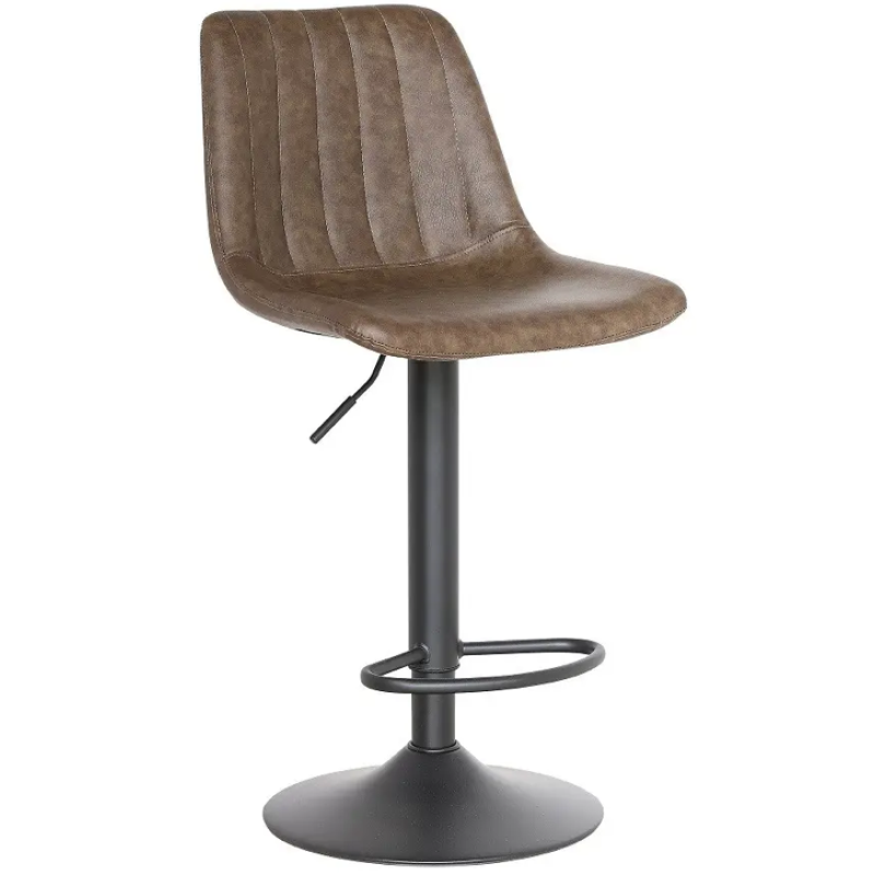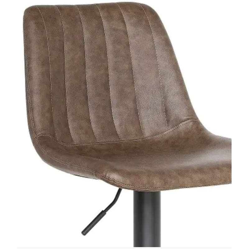 Високий барний стілець, висота стільця регулюється від 90 см до 112 см Високий барний стілець, сидіння і спинка м'які, матеріал екошкіра, яка легко чиститься, дуже м'яка, металева основа з підніжкою, чорний колір, повертається і регулюється, підстава внизу, ширина сидіння 42 см, глибина сидіння 36 см, максимальна висота від підлоги до верху спинки від 90 см до 112 см. Новий сучасний стиль ідеально підходить в інтер'єри лофт, модерн, мінімалізм.