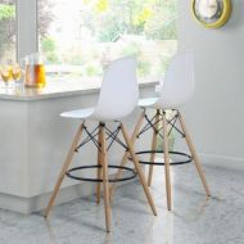 Стілець високий, табурет, сидіння з пластика, висока зручна спинка, високий стійкі дерев'яні ніжки, металева кругла підніжка всередині, фарбована, колір чорний, барний стілець не регулюється по висоті, не повертається, розмір: висота від підлоги до верхнього краю спинки - 112 см, ширина сидіння 46 см, глибина 40 см, висота спинки 42 см, висота від підлоги до сидіння 70 см.