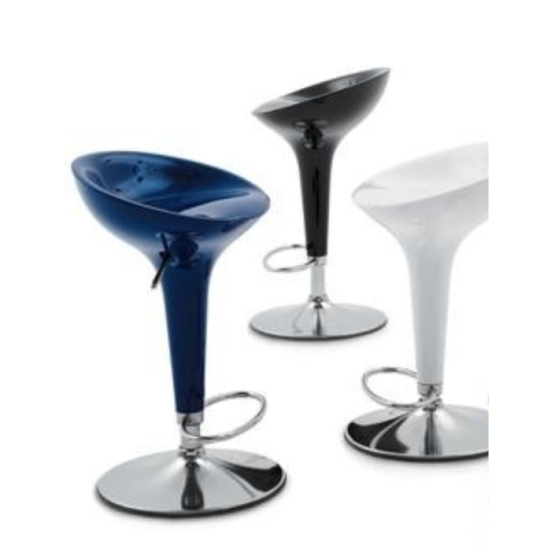 Барний стілець високий, матеріал пластик, хромована основа, регулюється по висоті, підніжка, розміри: висота від підлоги до сидіння від 59 до 79 см, висота від підлоги до спинки від 69 до 89 см, ширина 43 см, глибина 38 см.