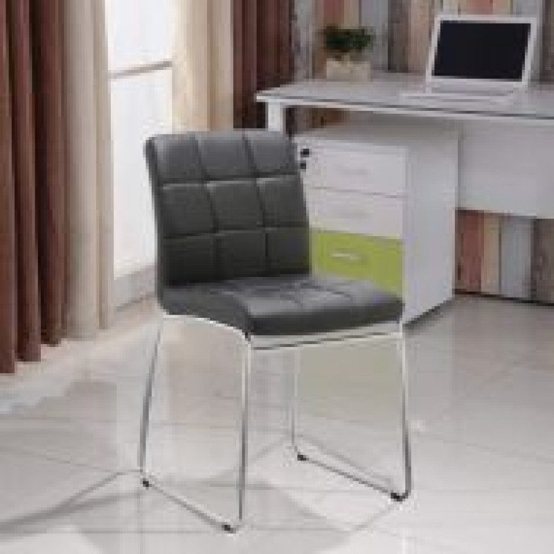 СТІЛЕЦЬ, материал обивки кожзам, на спинке и сиденьи прострочки в виде крупных квадратов, прочный каркас из металла, покрытие хромированное. 51*55*80 см