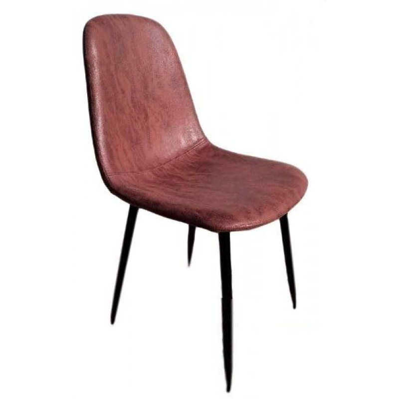 Стілець м'який, матеріал екошкіра матеріал екошкіра, міцна і приємна на дотик, спинка і сидіння в м'якій обивці, зручні для посадки спинка і сидіння, ніжки металеві, фарбовані, колір ніжок чорний, розмір стільця: ширина сидіння 49 см, глибина сидіння 37 см, висота спинки 32 см, висота від підлоги до верхнього краю спинки 78 см, висота посадки 47 см. Тон, півтон у відтінку допускається.