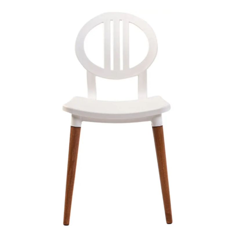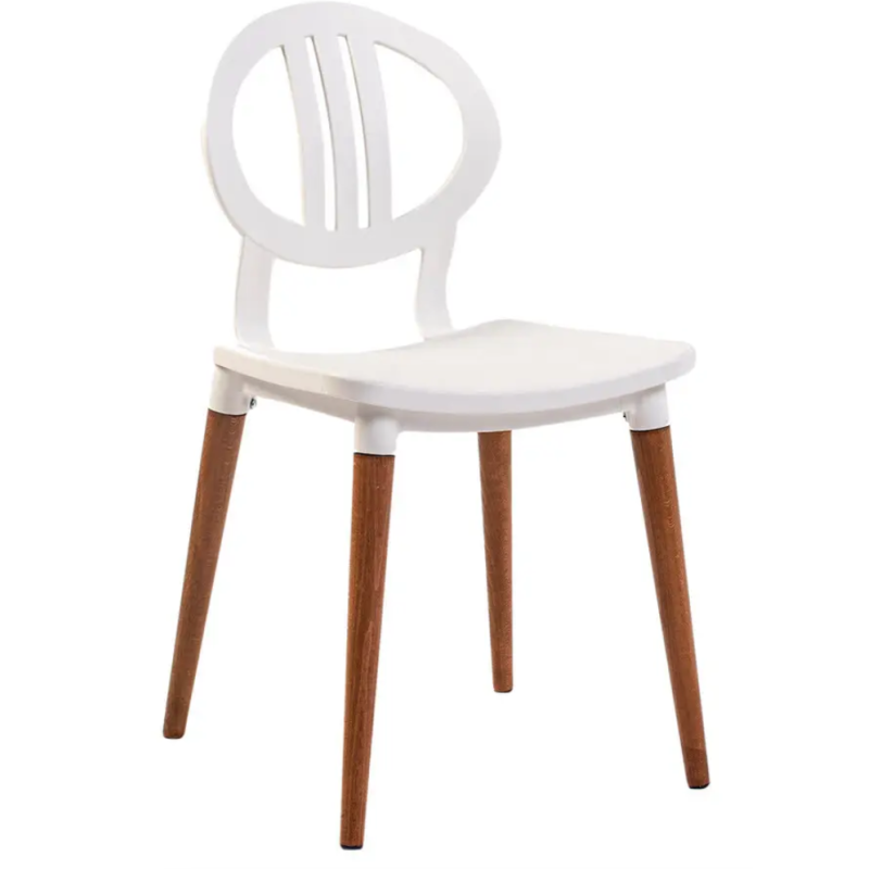 Стілець сучасний, сидіння з пластика, зручна висока спинка, яка забезпечує найкращий комфорт, ніжки дерев'яні, світлий відтінок, ніжки поставляються в коробці і легко фіксуються за допомогою двох гвинтів на кожній ніжці, розмір стільця: ширина сидіння 41,5 см, глибина сидіння 48 см, висота стільця від підлоги до верху спинки 80 см. Завдяки своєму сучасному вигляду, він дуже підходить для використання у приміщенні, наприклад, у ресторанах, кафе, бістро, конференц залах, офісах, залах для зустрічей, а також у готелях як крісло для очікування.