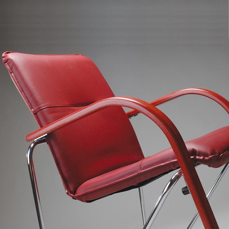 Модель має м'які сидіння і спинку. У основі крісла міцна металева рама. Металеві підлокітники обладнані елегантними дерев'яними накладками.