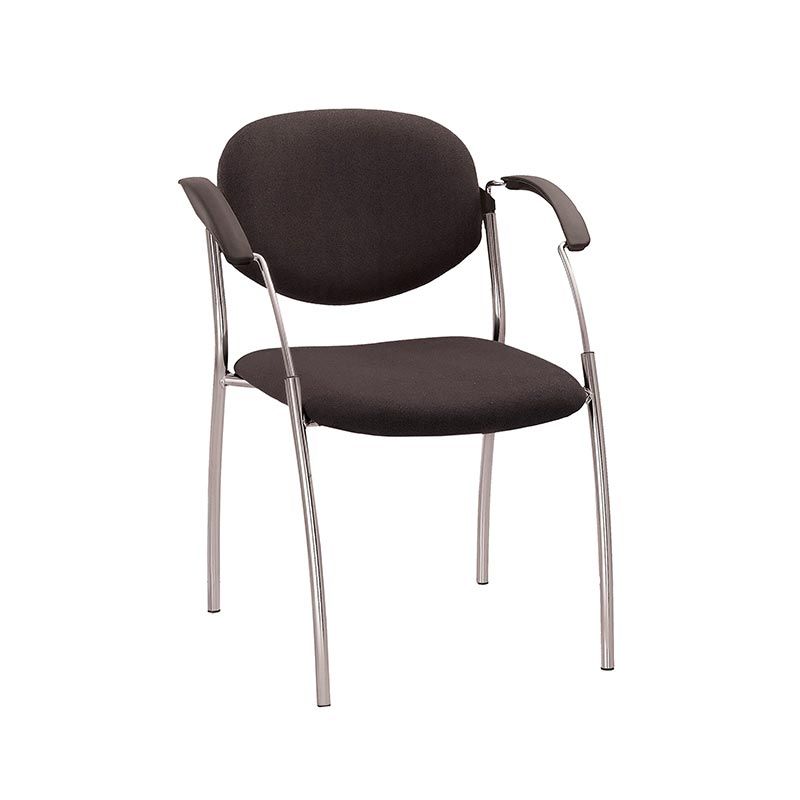 модель характеризируется высокой стойкостью, благодаря раме с радиально изогнутыми ножками. СТІЛЕЦЬья можно штабелировать. Фигурные металические подлокотники оббиты пластиковыми накладками.Ширина сиденья 458