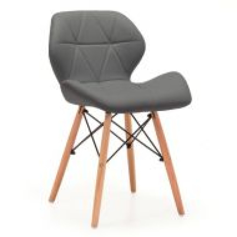 Стілець, матеріал екошкіра, м'які сидіння і спинка, прострочки по всій поверхні, ніжки дерев'яні, колір дерева світлий, ергономічний, м'який стілець популярний серед дизайнерів в інтер'єрах мінімалізм або хайтек. Розмір: висота посадки 44 см, ширина сидіння 49 см, глибина сидіння 37 см, висота спинки 31 см, висота стільця 73 см. Тон, півтон у відтінку допускається.