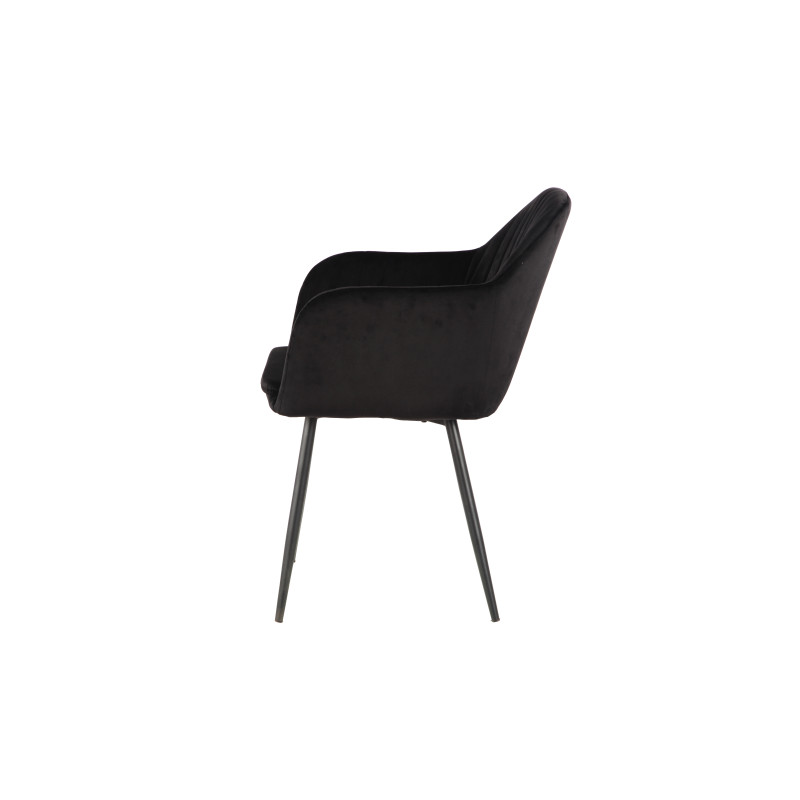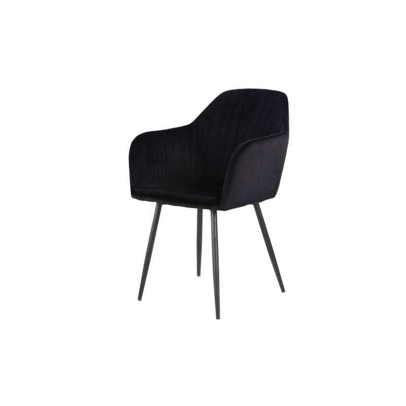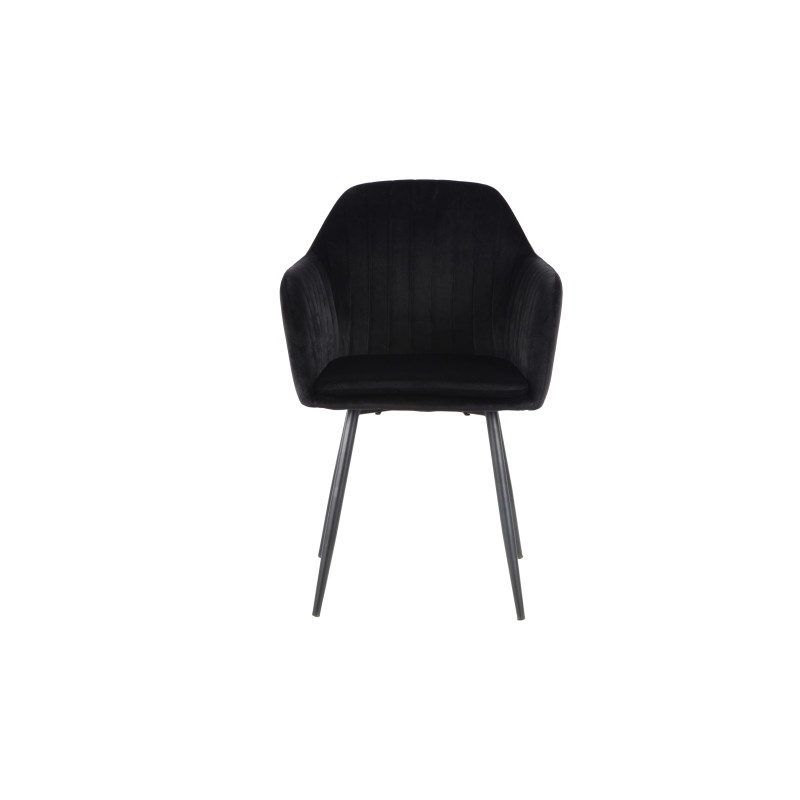 Тип: стілець Колір: чорний Оббивка: сидіння та спинка - тканина velvet Основа: металеві ніжки пофарбовані в чорний колір Підлокітники: нерегульовані Матеріал корпусу: фанера + метал Висота стільця: 82 см Висота сидіння: 50 см Висота спинки: 39 см Ширина спинки: 44 см Ширина сидіння: 42 см Глибина сидіння: 44,5 см Висота підлокітників: 24 см Гранична вага: 120 кг Вага нетто: 6 кг, брутто: 7,25 кг Розміри упаковки (2 штук в уп): 63х58, 5х56 см Гарантія: 12 місяців Країна виробник: Китай"