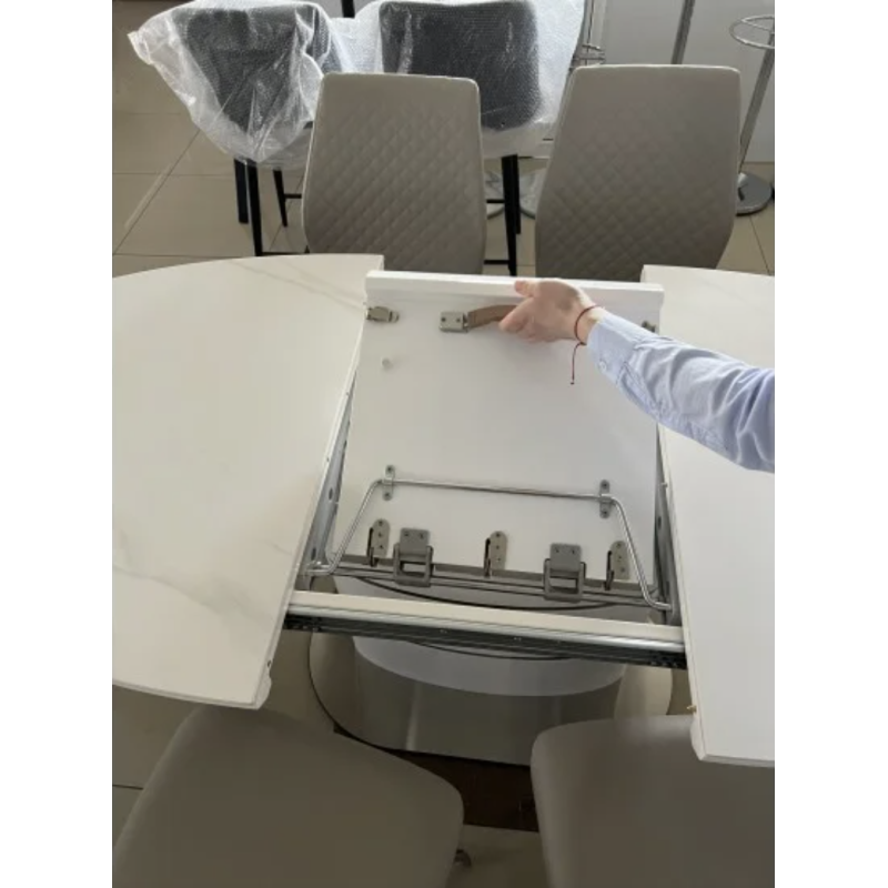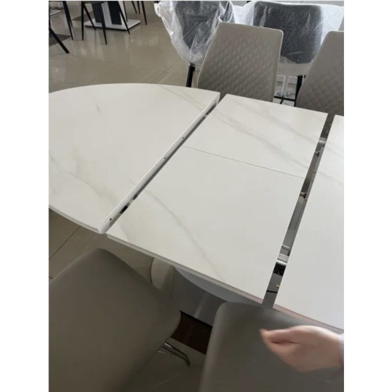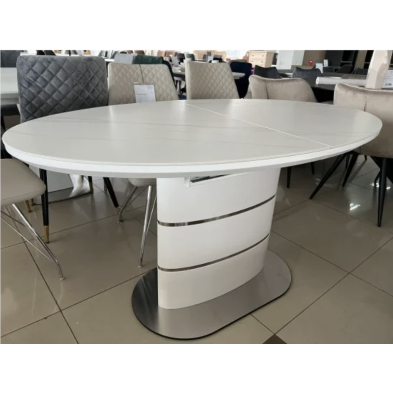 Стіл SANREMO CERAMIC — стильний розсувний стіл із керамічною стільницею з ефектом мармуру. Завдяки розкладному механізму легко збільшується з 140 до 180 см. Поєднує сучасний дизайн, міцний каркас у білому глянці та практичність для щоденного використання. Ідеально підходить для інтер’єрів у стилі модерн та гламур.