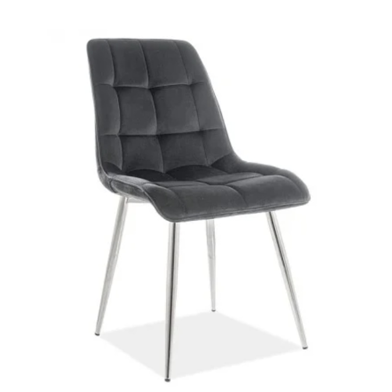 Стілець CHIC VELVET (чорний / хромований каркас) — стильний кухонний та обідній стілець, що поєднує елегантність і комфорт. М’яке сидіння, оббите бархатною тканиною, дарує затишок, а міцний металевий каркас із хромованим покриттям забезпечує довговічність і стійкість. Завдяки лаконічному дизайну стілець стане вдалим доповненням сучасної їдальні чи вітальні.