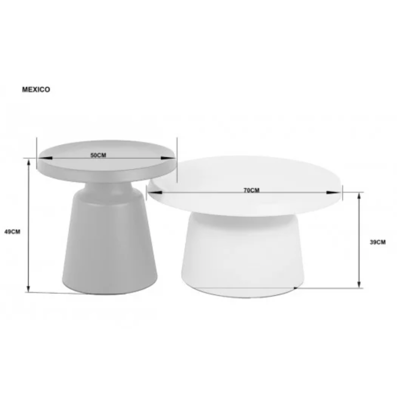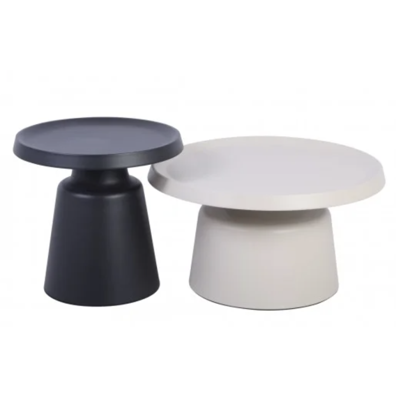 Журнальний столик MEXICO (бежевий + чорний, комплект Ø70 см та Ø50 см) — стильний набір із двох круглих столиків, який чудово підійде для сучасного інтер’єру. Металева стільниця та каркас забезпечують міцність і довговічність, а поєднання бежевого та чорного кольорів додає елегантності. Завдяки різним розмірам столи можна використовувати окремо або разом, створюючи зручний і функціональний простір.